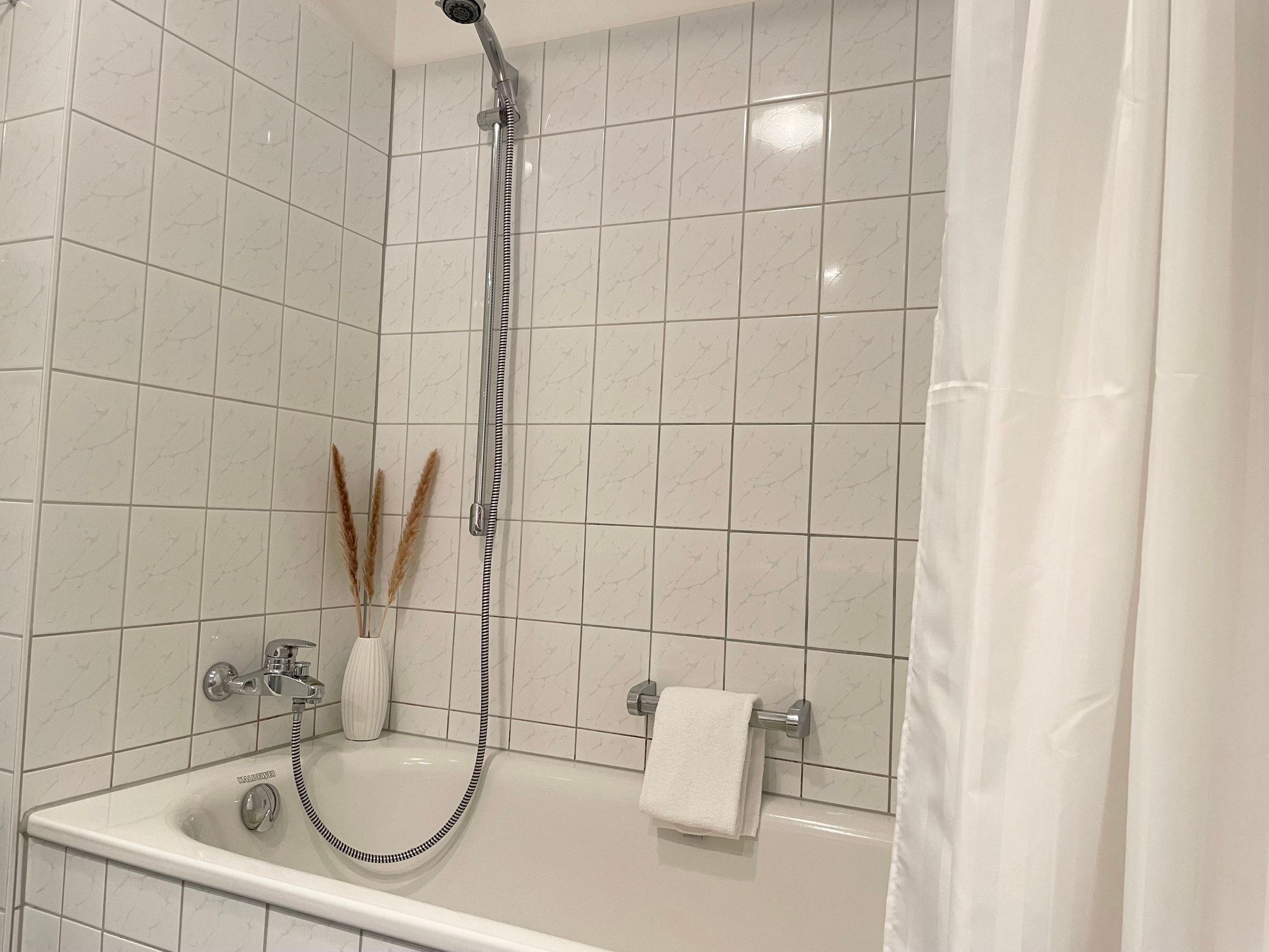 Diese großzügige Ferienwohnung bietet Platz für zwei Personen und befindet sich nur 200 Meter vom Strand entfernt. Der einladende Wohn- und Essbereich ist mit einem gemütlichen Sofa und zwei Sesseln ausgestattet, ideal für entspannte Abende. Der Balkon lädt dazu ein, die Zeit im Freien zu genießen und den Blick auf das Meer zu bewundern. Das Schlafzimmer verfügt über ein komfortables Doppelbett, das erholsame Nächte verspricht. Das Badezimmer ist mit einer Badewanne ausgestattet, perfekt für entspannende Schaumbäder. Gemeinschaftliche Einrichtungen wie Münz-Waschmaschinen und Trockner befinden sich im Keller und stehen zur Mitbenutzung bereit. Ein Fahrradkeller bietet genug Platz zur Unterbringung der Fahrräder nach erlebnisreichen Touren.
