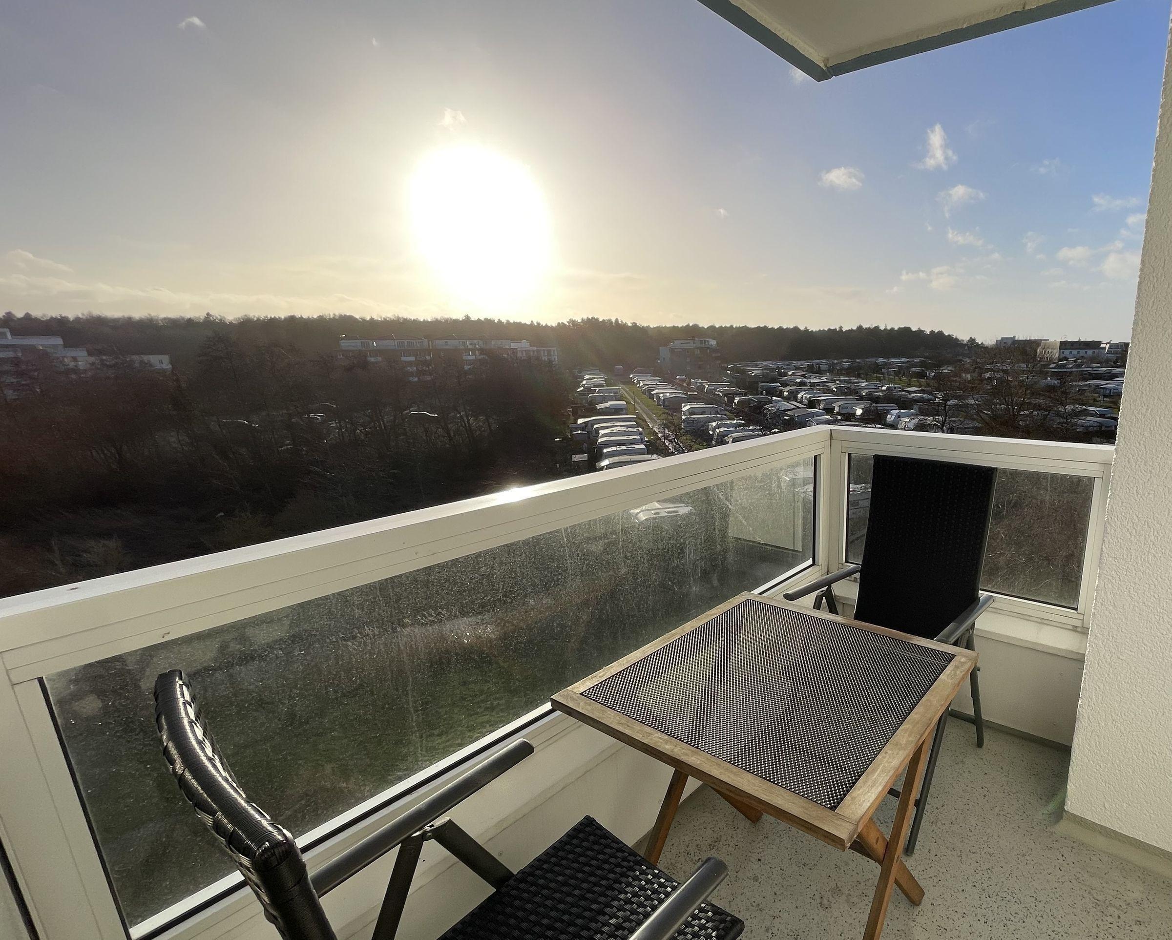 Die gut ausgestattete Küchenzeile mit Backofen ermöglicht eine individuelle Selbstverpflegung. Mahlzeiten lassen sich bequem auf dem geräumigen Balkon genießen, der einen unverbauten Blick auf die Nordsee bietet.
