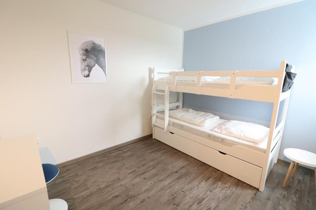 Die Unterkunft verfügt über zwei Schlafzimmer, die ideal für einen entspannten Familienurlaub geeignet sind. Das Hauptschlafzimmer ist mit einem komfortablen Doppelbett ausgestattet, während das zweite Schlafzimmer ein praktisches Etagenbett bietet. Die geschmackvolle Einrichtung sorgt für eine gemütliche und entspannte Atmosphäre.
