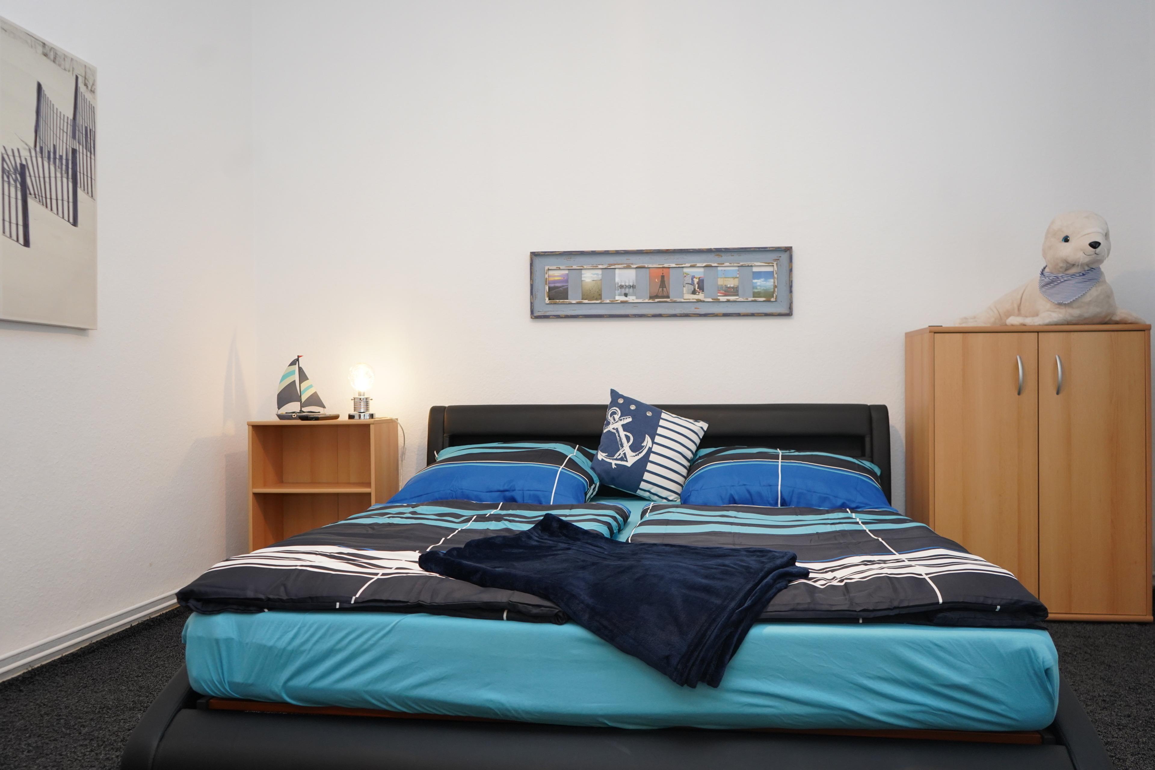 Willkommen in unserem komfortablen Apartment – Ihr perfektes Zuhause auf Zeit! Das großzügige französische Doppelbett in Kingsizequalität (160 x 200 cm) garantiert erholsame Nächte und trägt zur entspannten Atmosphäre der weitläufigen Ferienwohnung bei.