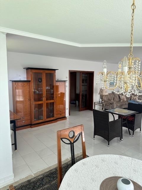 Zur Wohnung gehören ein großes Wohnzimmer mit einer nach Südwesten ausgerichteter Terrasse, einem Schlafzimmer mit Doppelbett (zwei Matratzen 90 X 200cm), eine Küche mit Geschirrspüler, Herd und allen nötigen Ausrüstungsgegenständen, sowie ein Duschbad. Die Toilette befindet sich außerhalb des Duschbades und ist vom Flur aus erreichbar. Die Wohnfläche beträgt zirka 75 m2.