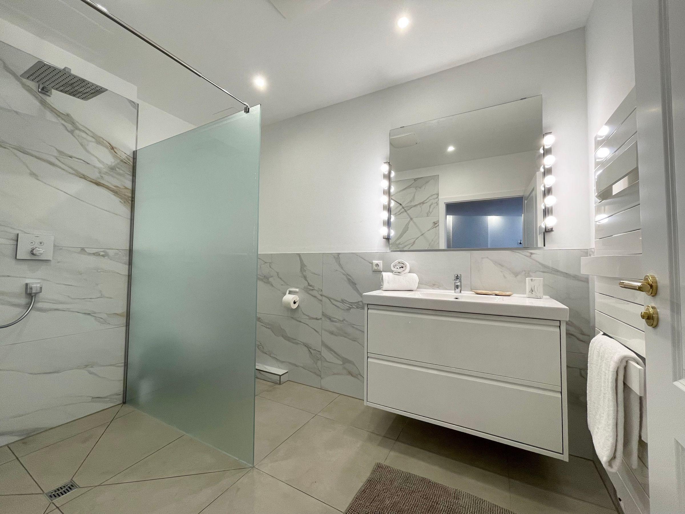 Die großzügige Ferienwohnung bietet Platz für bis zu 8 Personen und verfügt über 3 Schlafzimmer sowie ein komfortables Schlafsofa im Wohnzimmer. Zwei Schlafzimmer sind mit Doppelbetten (180 cm) ausgestattet, während das dritte Schlafzimmer ein Einzelbett (140 cm) bereithält. Die beiden Badezimmer, inklusive einer kleinen Wellness-Oase mit Whirlpool-Badewanne und Sauna, garantieren Entspannung pur. Die gut ausgestattete Küche bietet optimale Bedingungen für gemeinsame Kochabende. Im stilvoll eingerichteten Wohnzimmer mit großem Sofa lässt es sich gemütlich verweilen. Die Wohnung im Erdgeschoss gewährleistet einen barrierearmen Zugang und schafft mit großen Fenstern eine freundliche Atmosphäre. Gemeinschaftlich nutzbar sind Waschmaschinen, Trockner und ein Fahrradkeller im Haus. Ein kleiner Spielplatz für Kinder ist ebenfalls vorhanden. Ein Bäcker im Haus sorgt saisonal für frische Backwaren.
