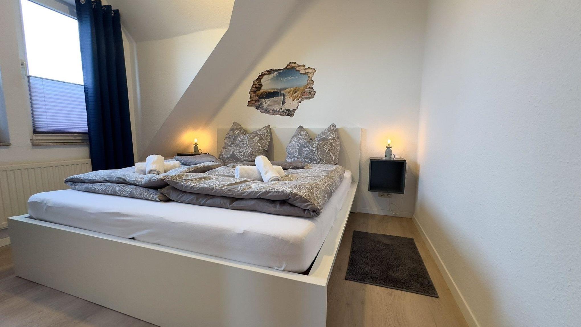 Im "Haus Nordseeperle Meerblick Apartment 11" erwartet die Gäste eine moderne Ferienwohnung mit einer Fläche von 46 m², die Platz für bis zu vier Personen bietet. Die Unterkunft verfügt über ein gemütliches Schlafzimmer und einen offenen Wohnbereich. Die voll ausgestattete Küche bietet moderne Geräte wie Herd, Mikrowelle, Kühlschrank und Geschirrspüler, während der Esstisch im Wohnbereich einladende Mahlzeiten ermöglicht. Ein modernes Badezimmer mit Dusche und Wanne ergänzt die Ausstattung. Zur Entspannung steht eine hauseigene Sauna zur Verfügung. WLAN und ein Fernseher runden den Komfort ab. Haustiere sind auf Anfrage willkommen, und die Wohnung ist kinderfreundlich. Praktische Annehmlichkeiten wie Waschmaschine und Trockner sind gemeinschaftlich nutzbar. Die Lage ist optimal, mit nur 20 Metern zum Meer und 50 Metern zum Strand, ideal für einen erholsamen Urlaub an der Nordsee.