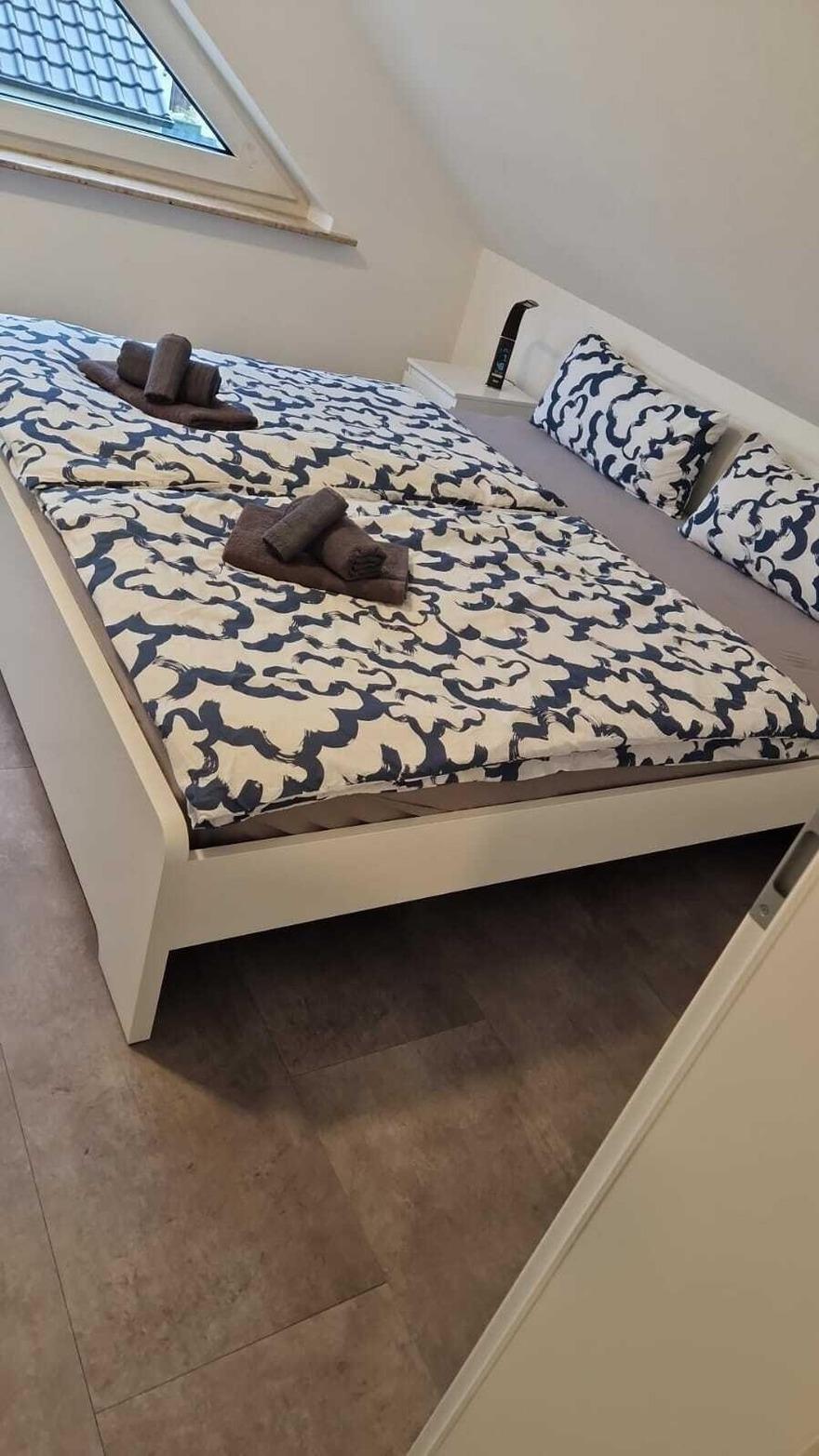 Diese Ferienwohnung bietet eine stilvolle und komfortable Unterkunft für individuelle Bedürfnisse. Die beiden Schlafzimmer sind geschmackvoll eingerichtet, eines mit einem Doppelbett und das andere mit zwei Einzelbetten, ideal für Familien oder Gruppen. Die separate Küche ist mit modernen Geräten ausgestattet, darunter ein Geschirrspüler, ein Elektro-/Gasherd, ein Backofen, eine Mikrowelle, ein Kühlschrank, eine Kaffeemaschine, ein Wasserkocher und ein Toaster. Hier können Gäste ihre kulinarischen Fähigkeiten entfalten.