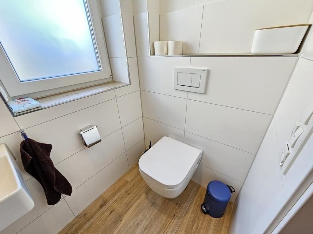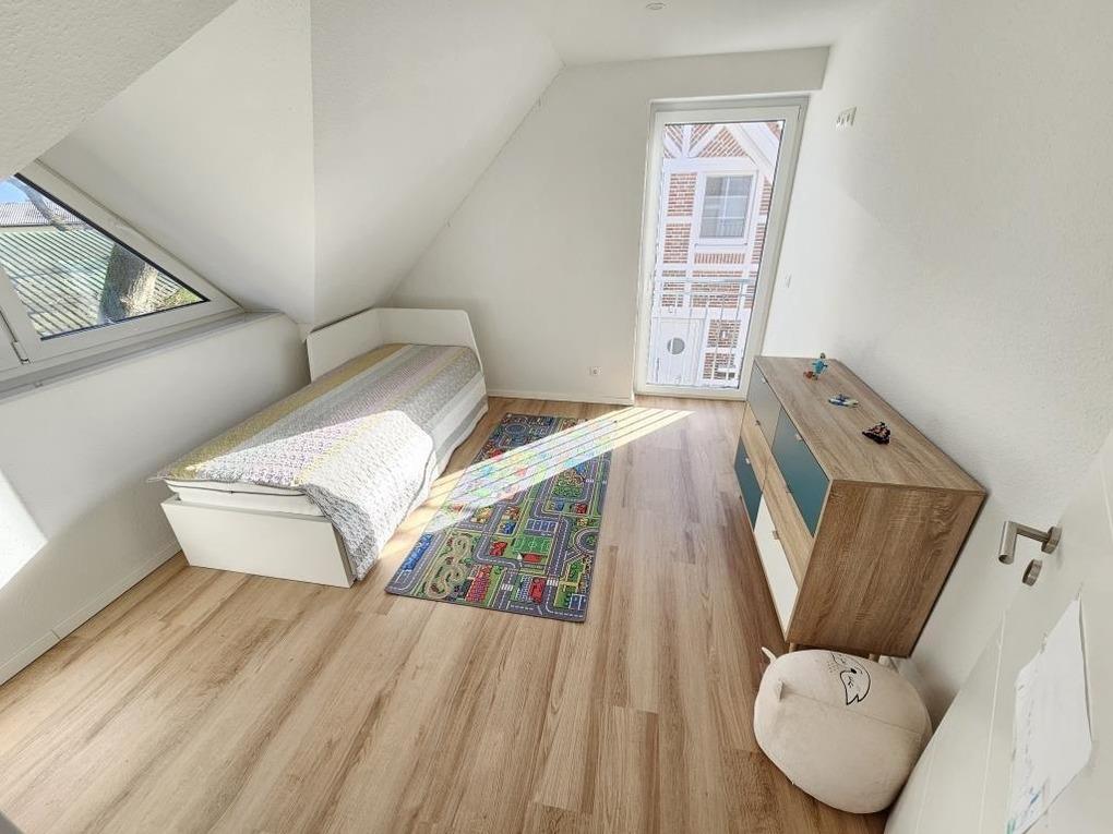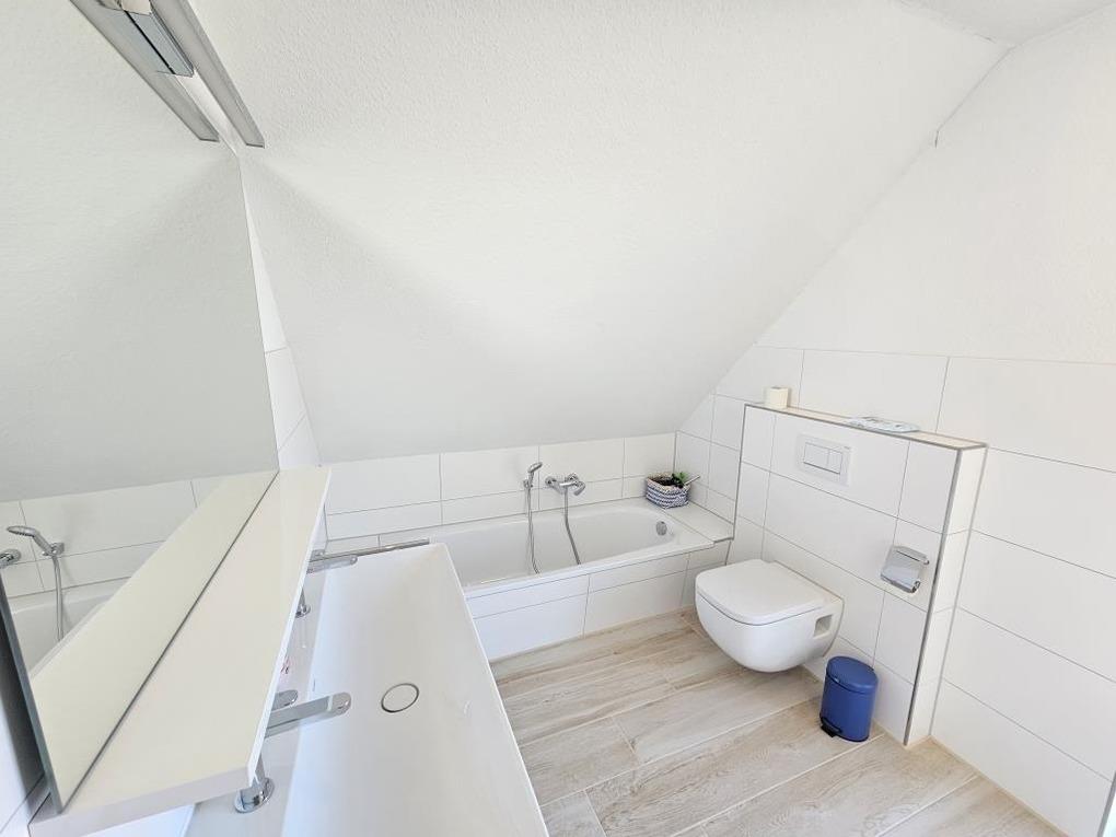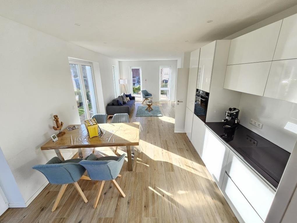 Im Erdgeschoss des Hauses finden Sie einen gemütlichen Wohnraum von dem man direkt auf die Terrasse und in den großen Garten am Haus gelangt. Die hochwertige Küchenzeile und der Esstisch laden dazu ein, kochen und schnacken gemütlich miteinander zu verbinden. Ein Badezimmer mit Dusche / WC steht im Erdgeschoss zur Verfügung. Desweiteren befindet sich im Erdgeschoß ein Abstellraum mit einer Waschmaschine, die Sie kostenlos nutzen dürfen. Im Obergeschoss finden Sie 2 Schlafräume (1x ein Doppelbett und 1x Einzelbett) sowie ein schönes Badezimmer mit Dusche / WC und einer Badewanne