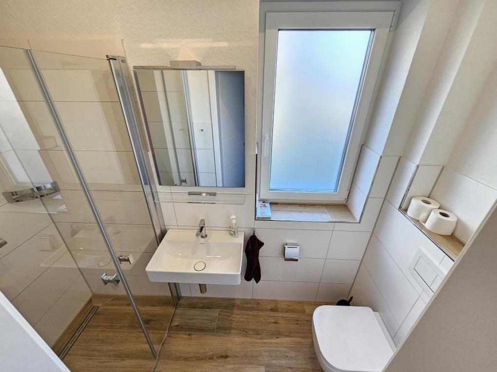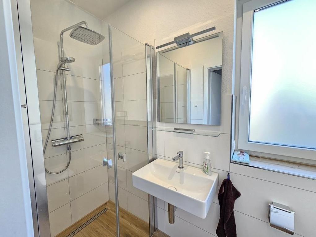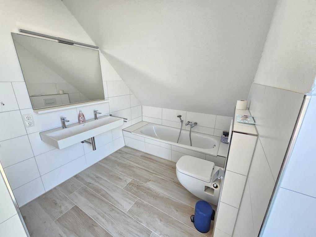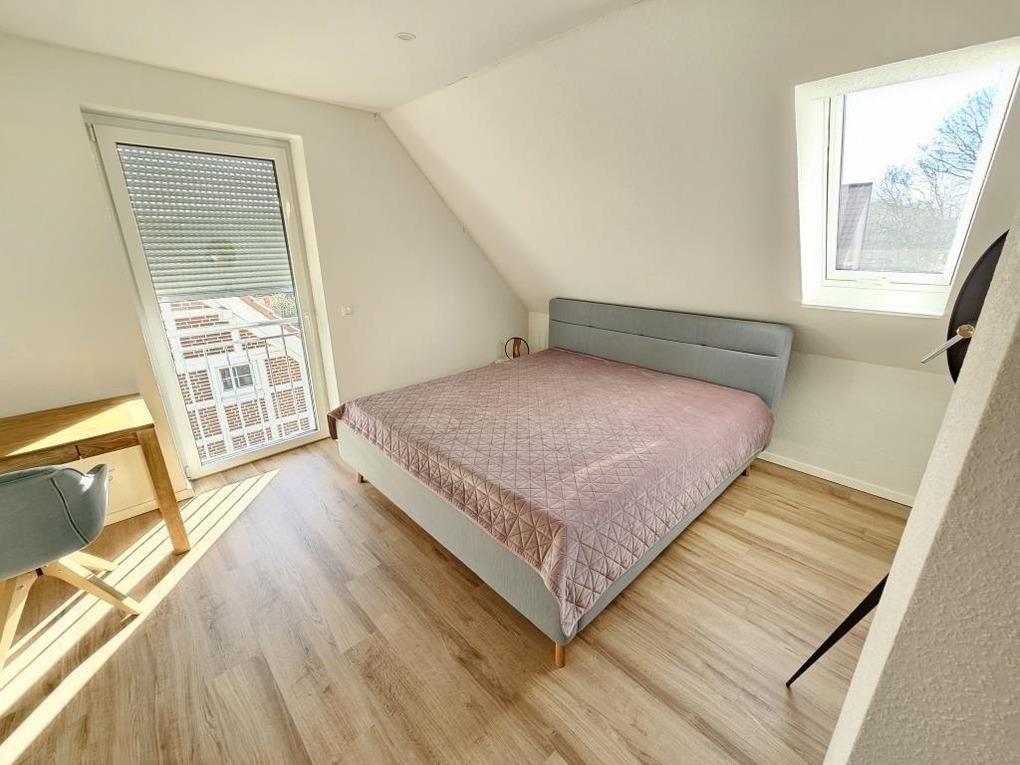 Im Erdgeschoss des Hauses finden Sie einen gemütlichen Wohnraum von dem man direkt auf die Terrasse und in den großen Garten am Haus gelangt. Die hochwertige Küchenzeile und der Esstisch laden dazu ein, kochen und schnacken gemütlich miteinander zu verbinden. Ein Badezimmer mit Dusche / WC steht im Erdgeschoss zur Verfügung. Desweiteren befindet sich im Erdgeschoß ein Abstellraum mit einer Waschmaschine, die Sie kostenlos nutzen dürfen. Im Obergeschoss finden Sie 2 Schlafräume (1x ein Doppelbett und 1x Einzelbett) sowie ein schönes Badezimmer mit Dusche / WC und einer Badewanne