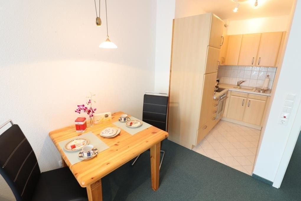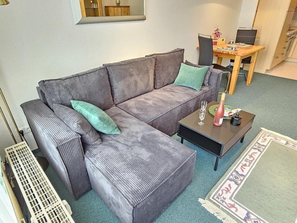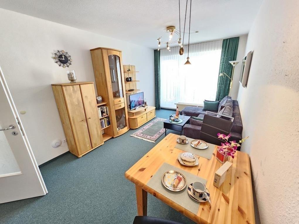 Die Wohnung verfügt über einen separaten Schlafraum mit einem komfortablen Doppelbett und großen Kleiderschrank. Der Wohnraum ist hell und einladend gestaltet und bietet ausreichend Platz für gemeinsame Stunden. Genießen Sie den Blick auf das Weltkulturerbe Wattenmeer und die Insel Neuwerk. Die Küchenzeile mit Backofen und Kühlschrank ermöglicht Ihnen, Ihre Lieblingsgerichte auch im Urlaub ganz einfach zuzubereiten. Ein kleiner Essbereich rundet das gesamte Ambiente ab.