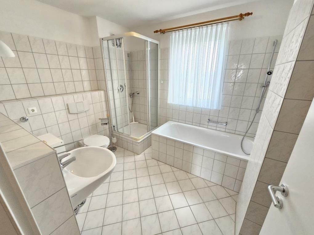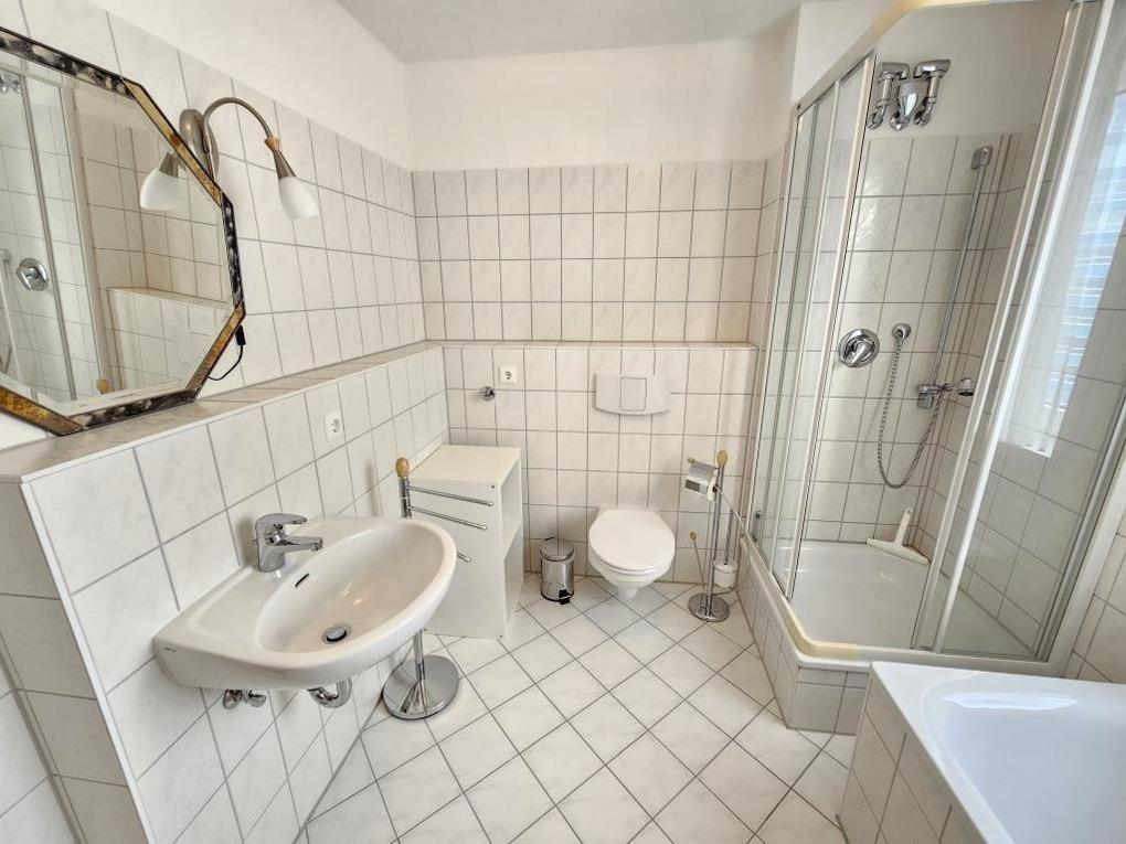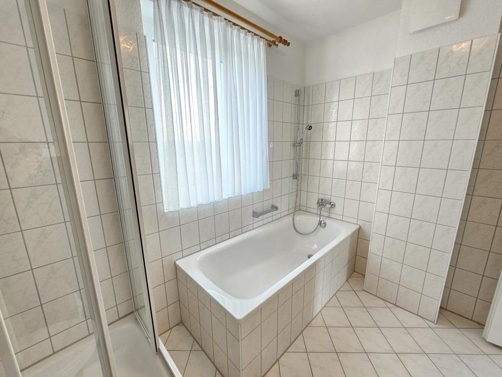 Das Badezimmer ist ausgestattet mit einer Dusche und einer Badewanne sowei einem WC und sorgt somit für einen besonderen Komfort.