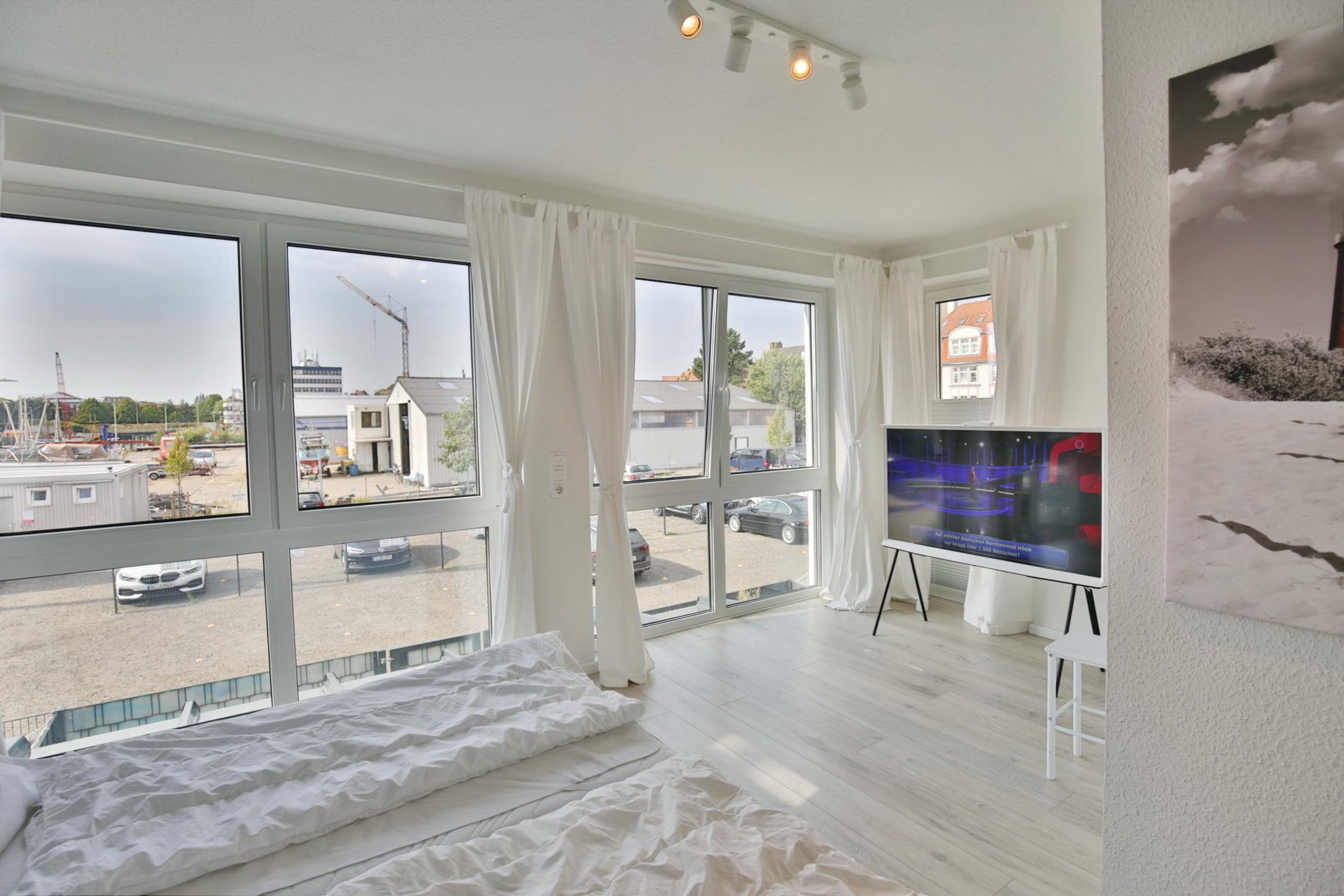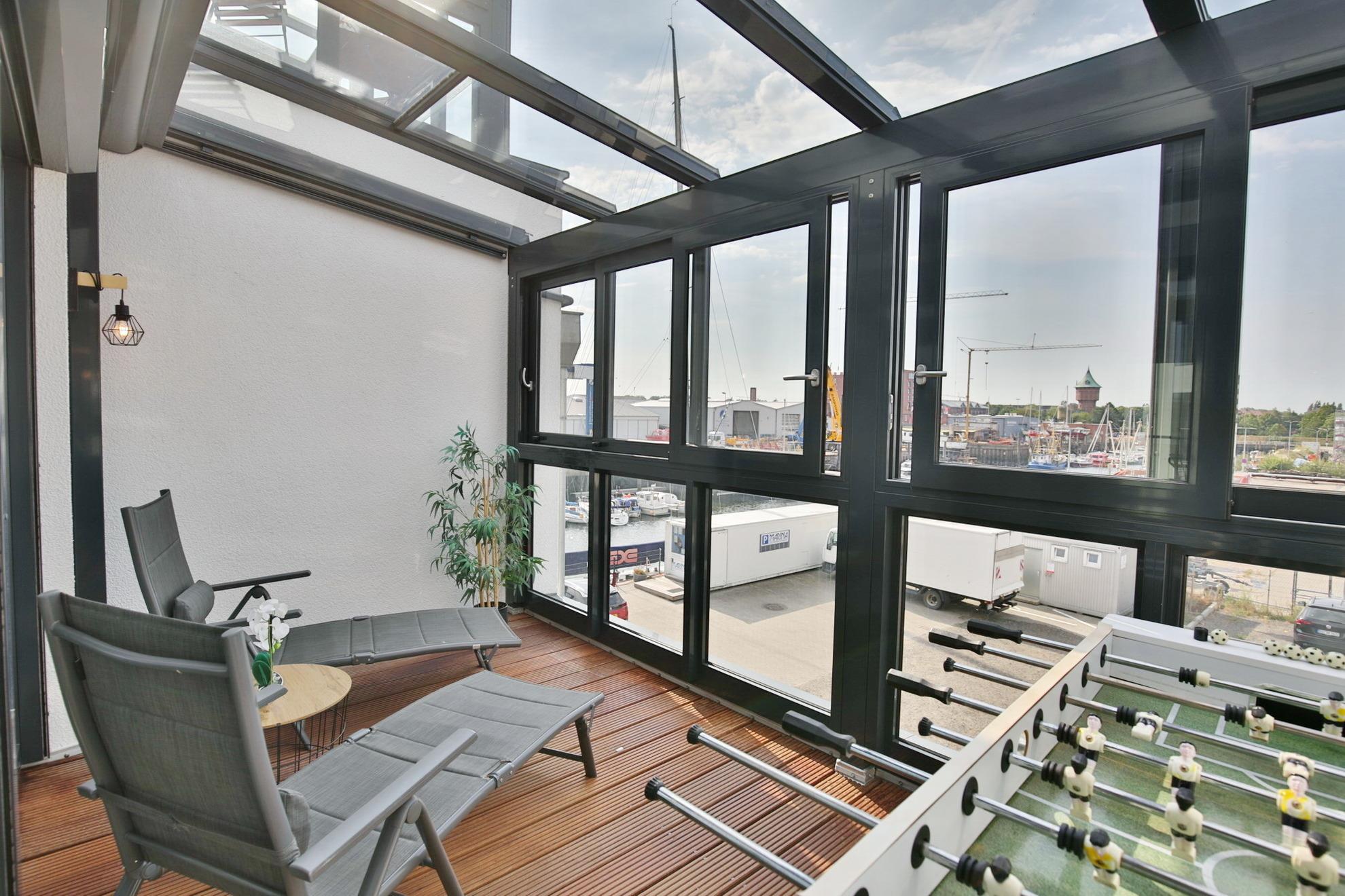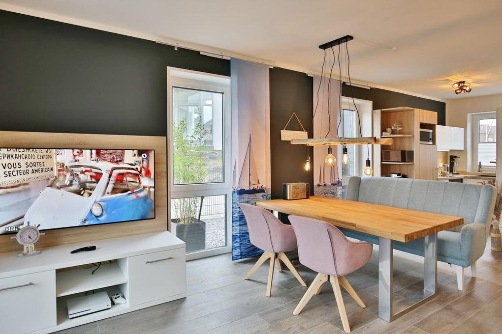 Exklusiver Neubau im Yachthafen für bis zu 6 Pers. auf 3 Etagen mit absoluter Vollausstattung. Großzügiges Wohnzimmer mit offener Küchenzeile (Backofen, Geschirrspüler, Mikrowelle etc.), großem Wintergarten und Terrasse (süd) mit Balkonmöbeln und Sonnenschirm (saisonabhängig), Kabel-TV, Gäste/WC. 1.OG: 2 komfortable Schlafzimmer. Doppelbett u. TV, Etagenbett u. TV. Großes Bad/Du/WC, Föhn. 2.OG: Großzügige Lounge mit franz. Doppelbett (1,40m) u. TV, schöne verglaste Loggia (süd) [&] kleinem Balkon (nord), Abstellraum mit Waschmaschine [&] Trockner. Kostenfreies W-Lan, Fußbodenheizung im gesamten Haus. Fahrradschuppen mit E-Bike Lademöglichkeit, 1 PKW-Stellplatz am Haus u. 1 Stellplatz in 20m Entfernung (#48) . Pkw-Ladestation kostenfrei,[nbsp] Nichtraucher und keine Haustiere.