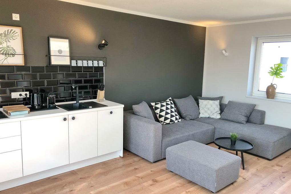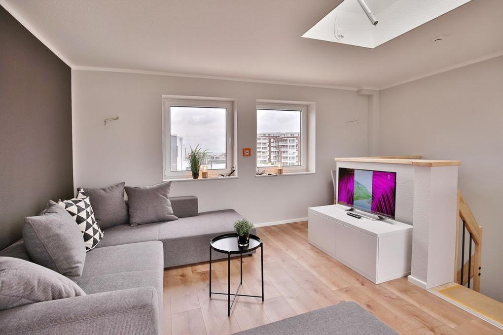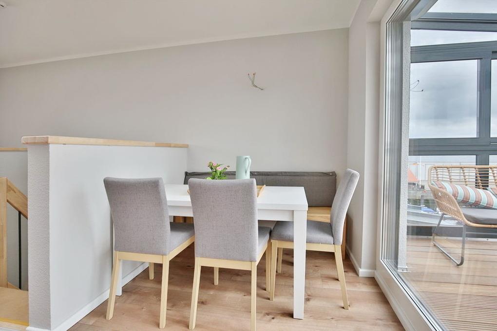 Exklusiver Luxusneubau direkt am Wasser für 6 Personen auf 4 Etagen. EG: Großzügiges Wohnzimmer mit TV, HiFi-Anlage mit Bluetooth-Funktion, USB-Port und CD-Player, angrenzendem Wintergarten (süd), offene Küche mit Vollausstattung, Gäste-WC und Garderobe. 1.OG: 1 Master-Bedroom mit Doppelbett, Arbeitsplatz und TV, Bad mit Dusche/WC und eigener Sauna (4 m²) mit Platz für 4 Personen, Zugang zur Terrasse (10 m²) mit unverbautem Blick in Richtung Elbe. 2.OG: 2 Schlafzimmer mit jeweils Doppelbett und TV, großzügiges Bad mit Dusche/WC, Abstellraum mit Waschmaschine und Trockner. 3.OG: Lichtdurchflutete Lounge mit vollausgestatteter Küchenzeile, Sitzecke, Ecksofa mit TV und einem großen Wintergarten (süd). Alle Räume verfügen über eine Fußbodenheizung, kostenfreies W-Lan, Fahrradschuppen mit eBike-Station, ein KFZ-Stellplatz direkt am Haus. (Hinweis: Der Hauptsaisonpreis gilt für max. 4 Personen. Für jede weitere Person wird €10,00 pro Pers. [&] Nacht berechnet).
