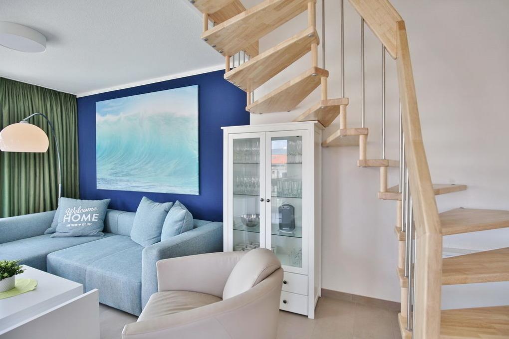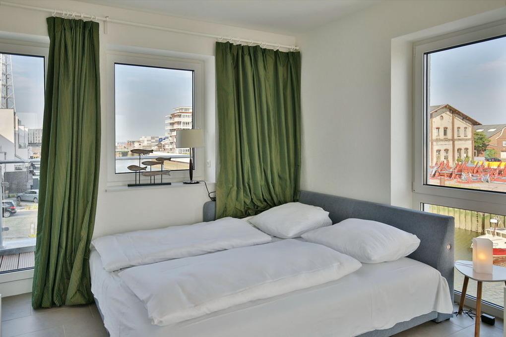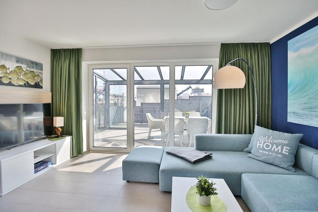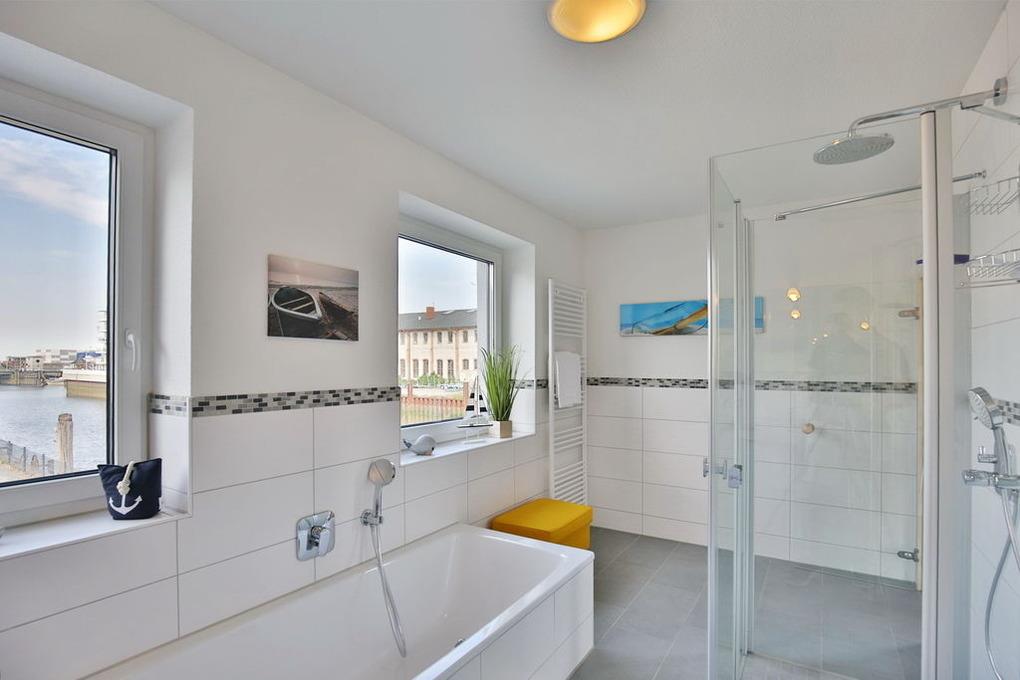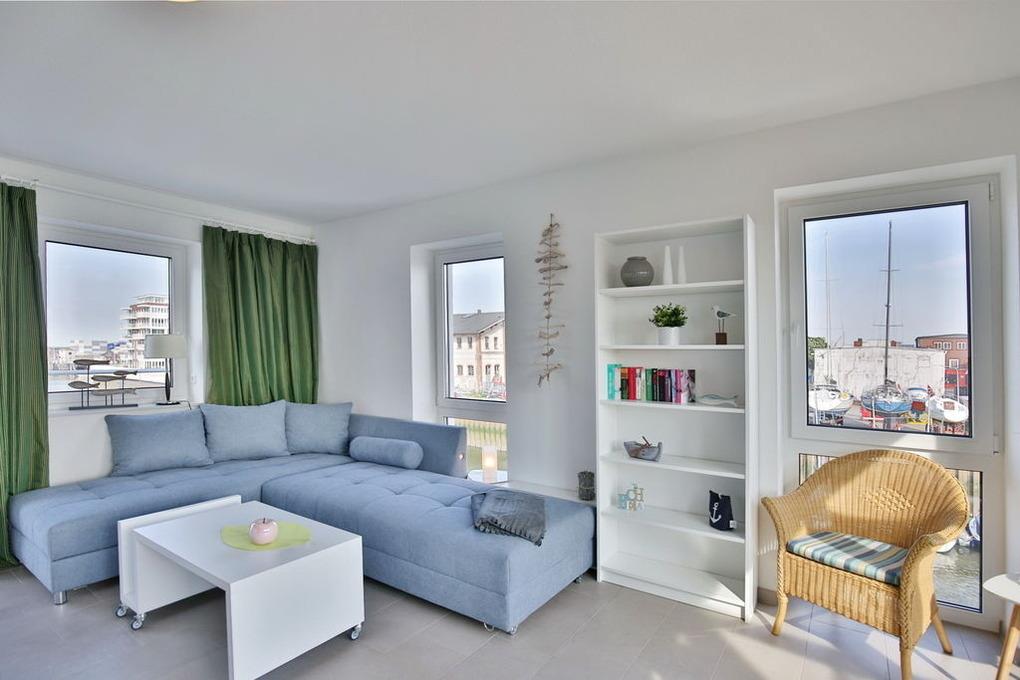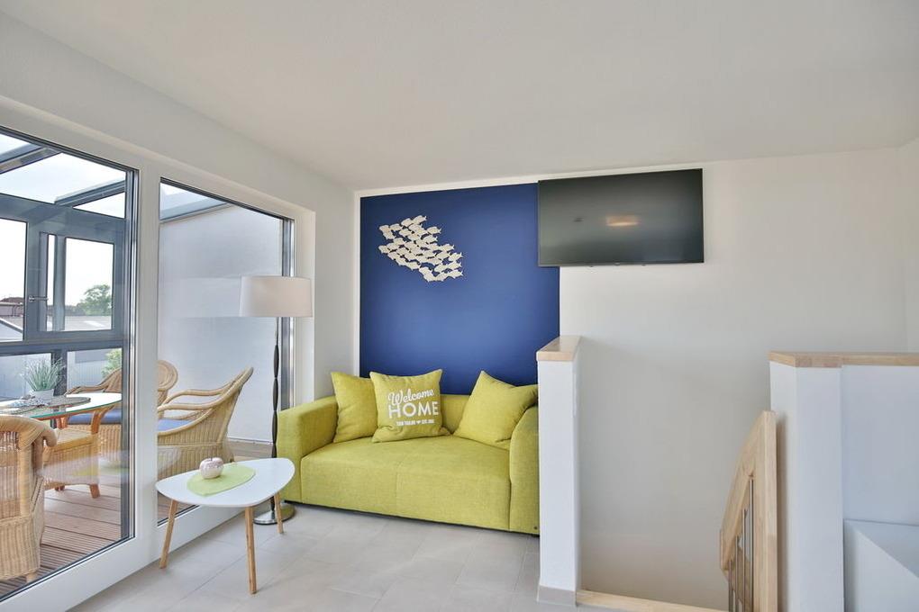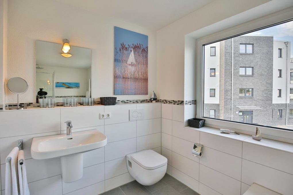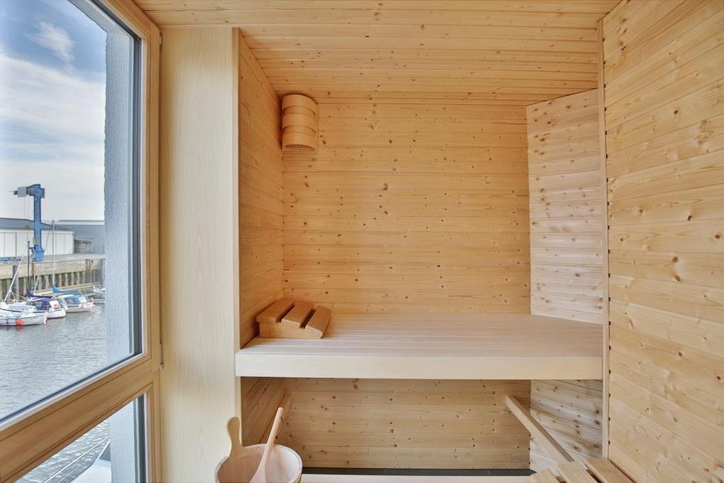 Exklusiver Luxusneubau direkt am Wasser für bis zu 6 Personen auf 3 Etagen. EG: Großzügiges Wohnzimmer mit TV und angrenzendem Wintergarten (süd), offene Küche mit Vollausstattung, Gäste-WC und Garderobe. 1.OG: 2 Schlafzimmer mit Doppelbetten und TV, Bad mit Wanne/Dusche/WC und eigener Sauna mit Blick auf die Boote im Yachthafen, Abstellraum mit Waschmaschine und Trockner. 2.OG: Lichtdurchflutete Lounge mit TV, Ecksofa (kann als Doppelbett gestellt werden kann), separates Relax-Sofa, kleiner Balkon (nord) und einem großen Wintergarten (süd). Alle Räume verfügen über eine Fußbodenheizung, kostenfreies W-Lan, Fahrradschuppen mit eBike-Station, ein KFZ-Stellplatz direkt am Haus.