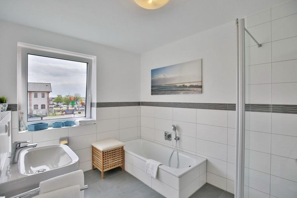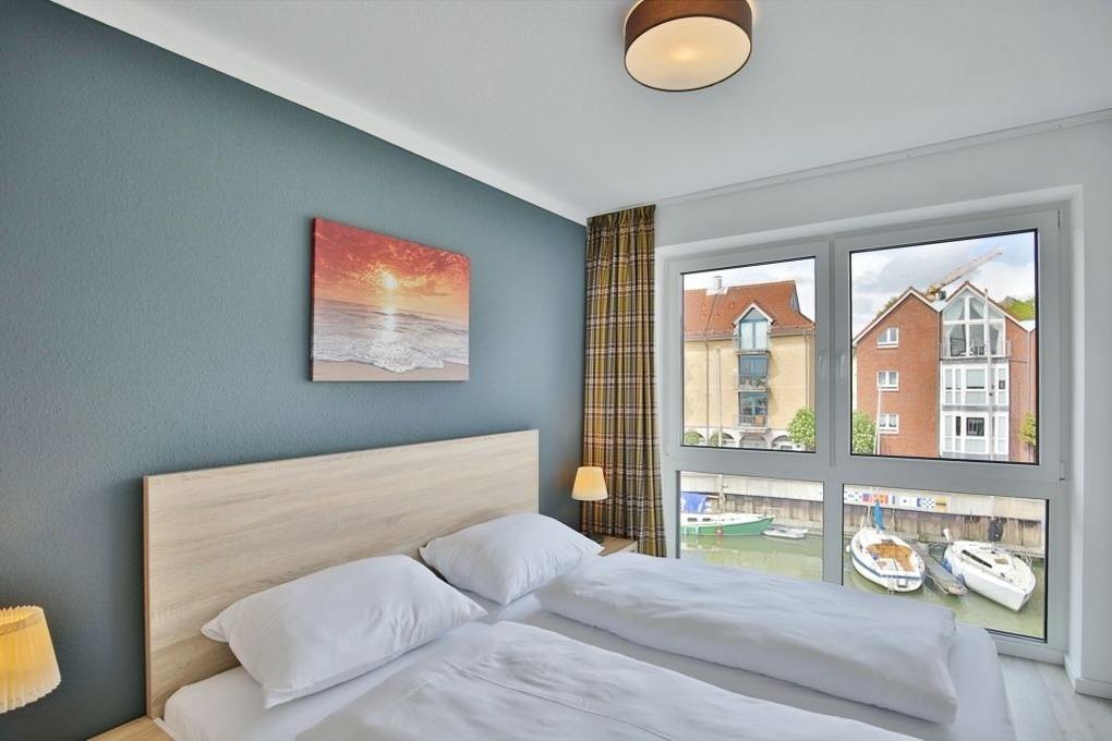Moderner Luxusneubau auf 4 Etagen für bis zu 6 Personen direkt im Yachthafen. EG: Großzügiges Wohnzimmer mit TV, offener Küche in Vollausstattung, Gäste-WC. 1.OG: 1 Schlafzimmer mit Doppelbett und TV, Bad mit Dusche/WC und großer Sauna zur freien Nutzung, Balkon (ost). 2.OG: 2 Schlafzimmer je mit Doppelbett, Bad mit Badewanne/Dusche/WC, Waschmaschine und Trockner im Abstellraum. 3.OG: Tolle Lounge mit TV, Leseecke, Kühlschrank, Spüle und Pad-Kaffeemaschine. Fußbodenheizung im gesamten Haus, Schlafräume mit elektrischen Außenrollläden, Kostenfreies W-Lan, Fahrradschuppen mit eBike-Ladestation, einen KFZ-Stellplatz direkt vorm Haus.