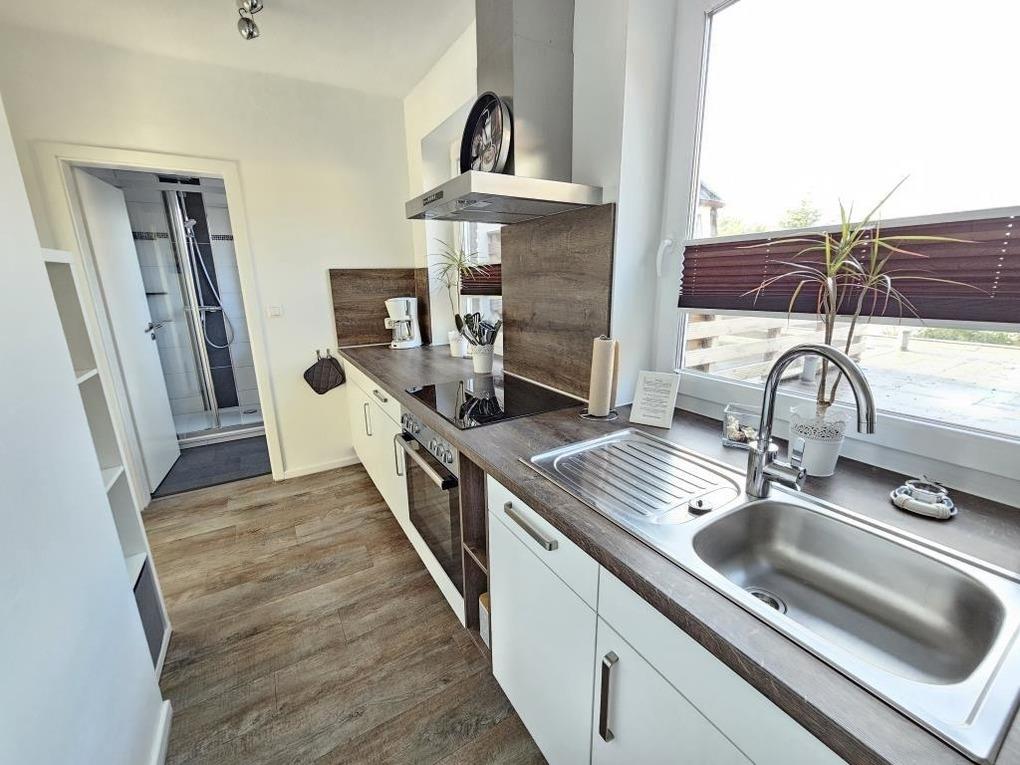 Die Wohnung 4 wurde renoviert und ist hell, modern und gemütlich eingerichtet. Im Schlafraum befindet sich ein Doppelbett 1,80mx2m und ein Sofa. In der separaten Küchenzeile steht Ihnen eine komplette Haushaltsausstattung zur Verfügung, wie z.B. Kaffeemaschine, Wasserkocher, Toaster, Töpfe, Pfanne, Geschirr, Besteck, Backofen, Ceranfeld, Geschirrspüler und Kühlschrank. Dusche / WC ist vorhanden. Auch ein Balkon gehört zur Wohnung.