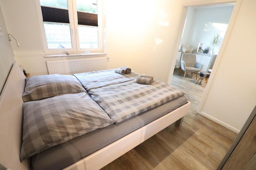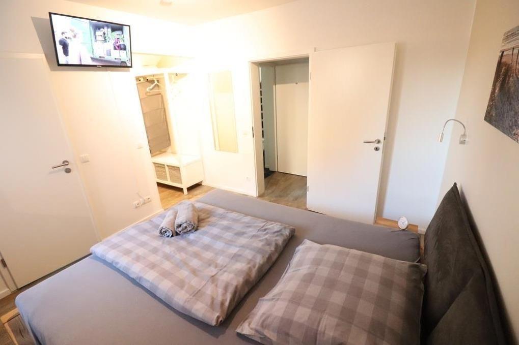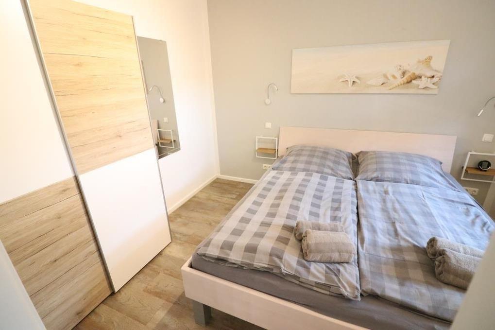 Ferienwohnung mit 2 Schlafräumen mit Doppelbetten 1,80m x 2,00m, 1 Wohnraum mit Balkon, TV, Radio, 1 separate Küche mit Backofen, Kühlschrank, Gefrierfach und Geschirrspüler, 2 renovierte Bäder mit Dusche/WC, Föhn, Nichtraucher, WLAN kostenlos, Parkplatz