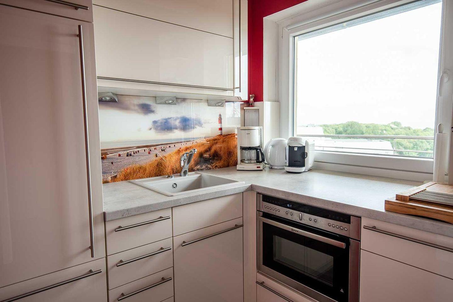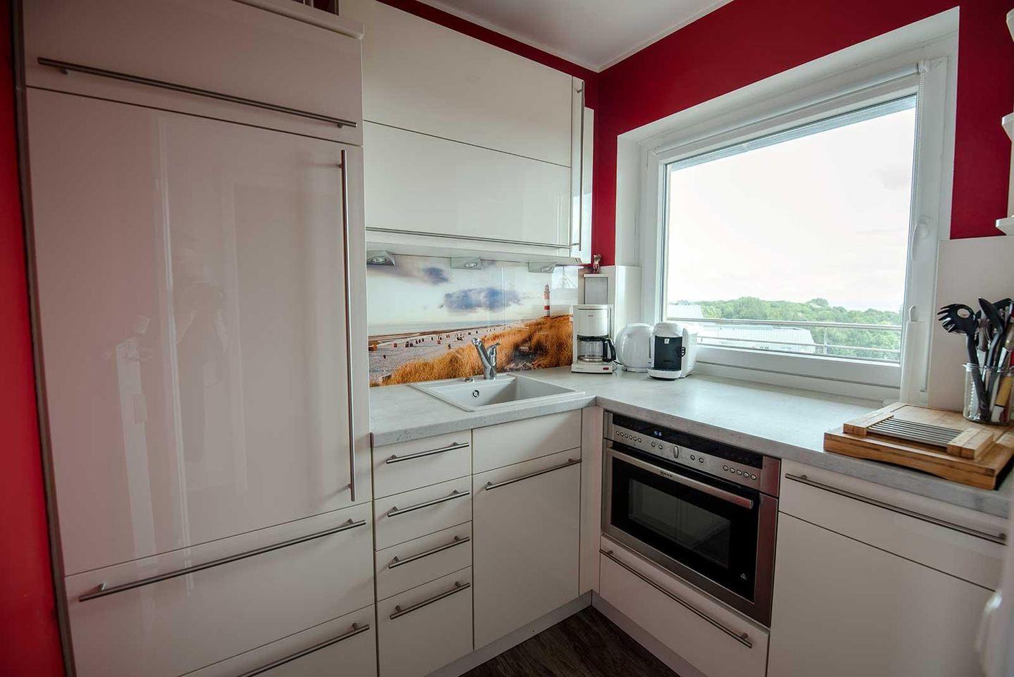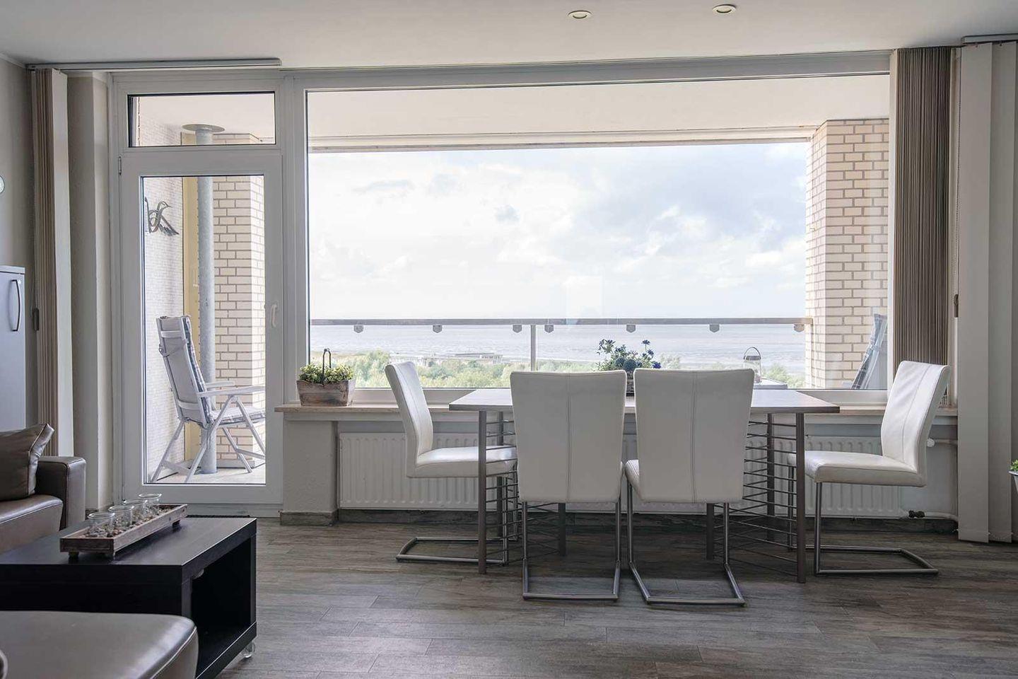 Hier verbringen Sie Ihren Nordsee-Urlaub mit bis zu 4 Personen und wunderschönem Ausblick sowohl bei Flut als auch bei Ebbe: Von der 7. Etage aus sehen Sie alles, was von Döse bis zur Grimmershörn Bucht in Cuxhaven los ist. Das separate Schlafzimmer bietet mit zwei Einzelbetten Übernachtungsmöglichkeiten, im geschmackvoll eingerichteten Wohnraum kann das moderne Schrankbett sowie das Schlafsofa für zwei weitere Gäste genutzt werden. Die separate Küche ist vollständig ausgestattet, das Badezimmer hat eine Dusche. WLAN steht Ihnen in der Unterkunft gratis zur Verfügung.