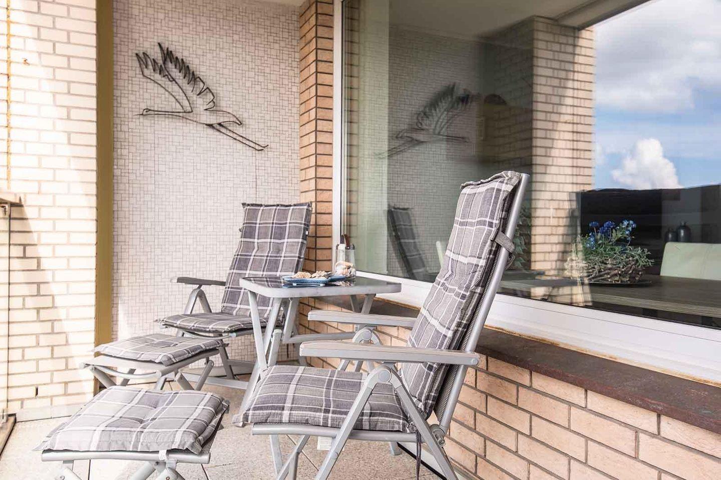 Strandnah: Ferienwohnung mit Balkon, atemberaubendem Meerblick und Strandkorb am Strand in Döse während der Hauptsaison