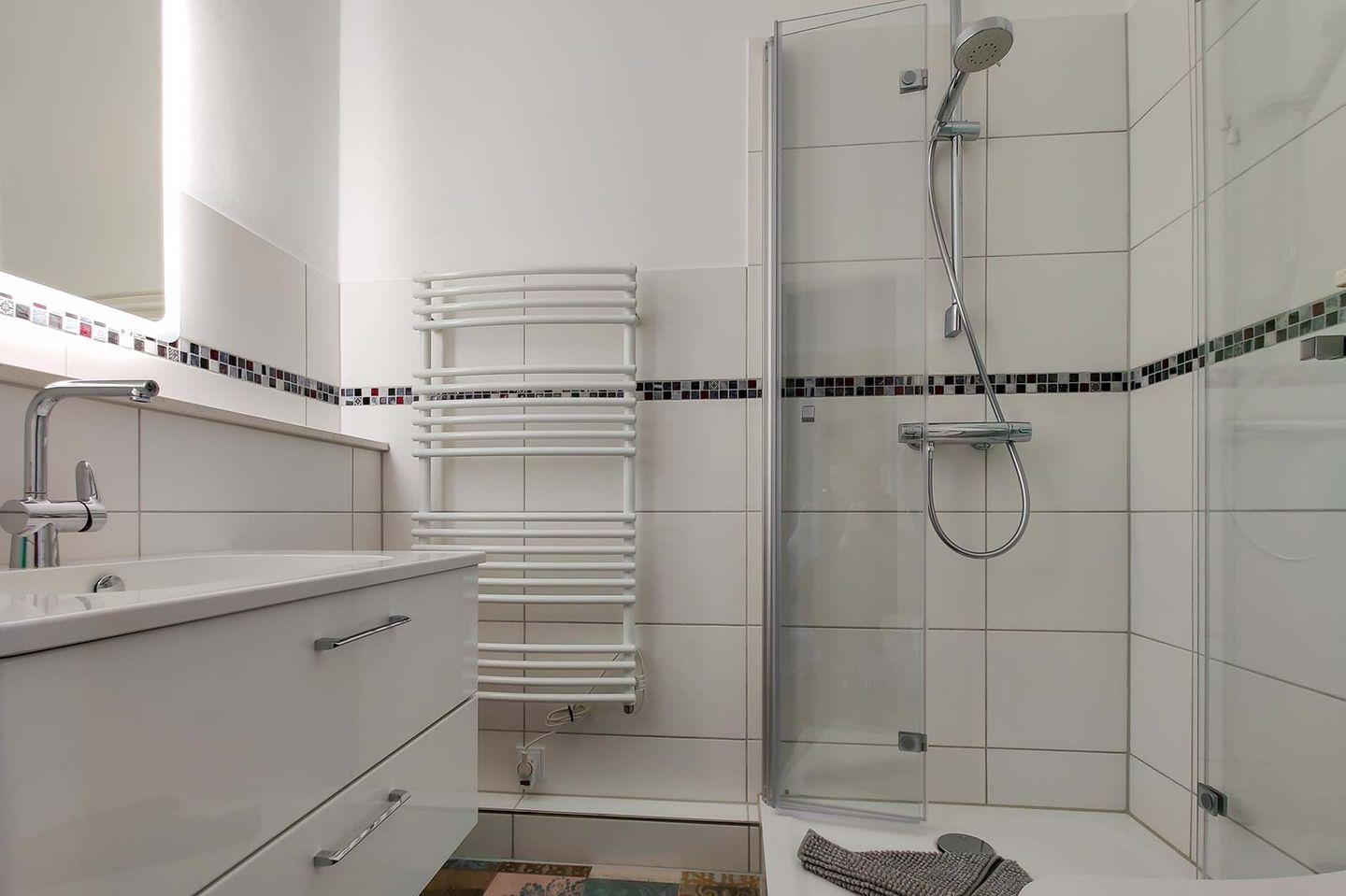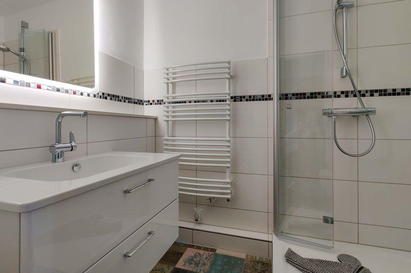 Bis zu 4 Personen können in dieser 2021 teilsanierten 2-Raum-Fewo mit Meerblick ihren Urlaub genießen. Sowohl vom überdachten Balkon als auch vom modern-gemütlichen Essbereich in der 5. Etage schauen Sie auf das Meer und können Ebbe, Flut und den Weltschifffahrtsweg beobachten. Die Strandpromenade ist nur ca. 100 m entfernt und zügig erreicht.