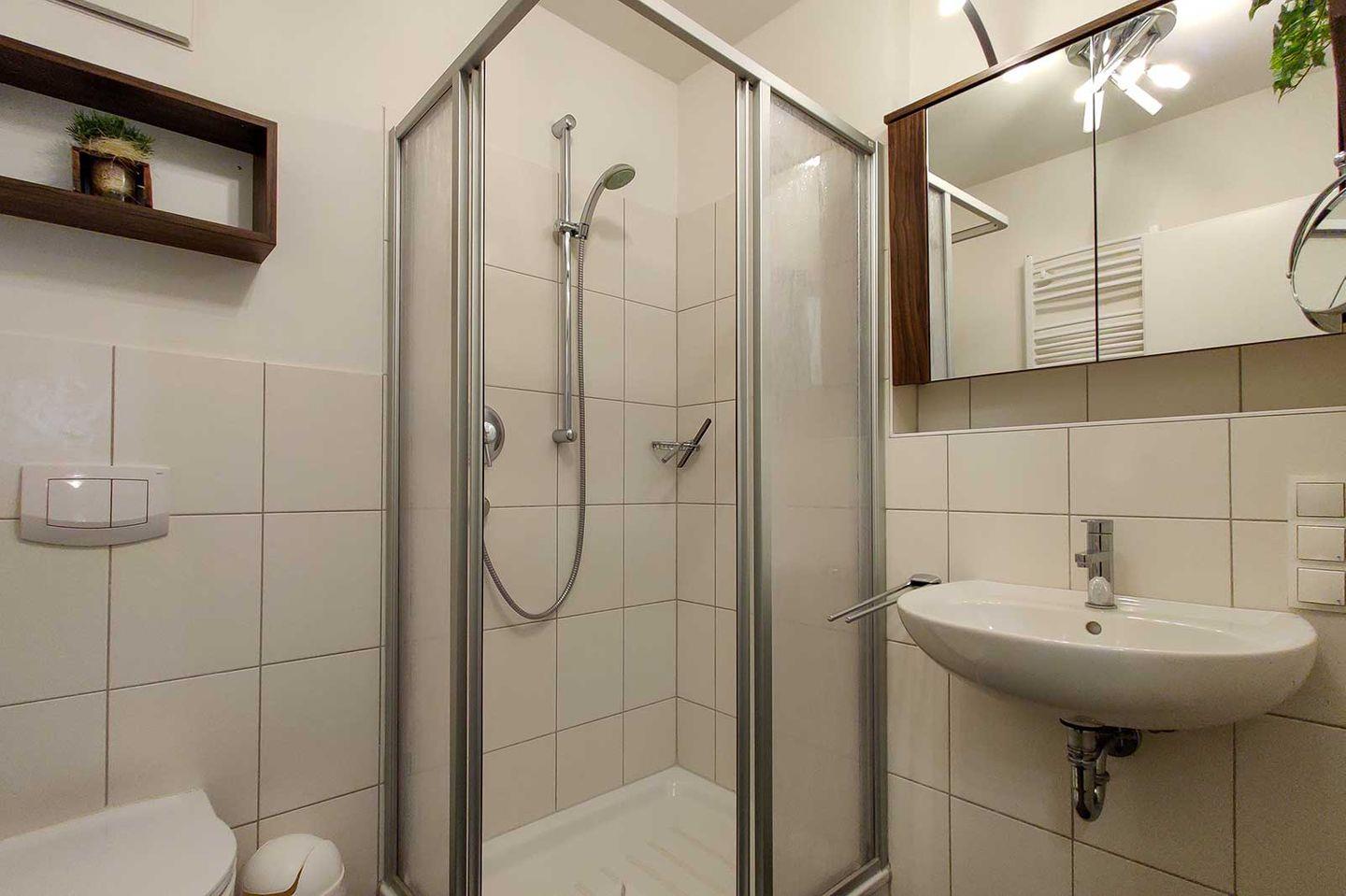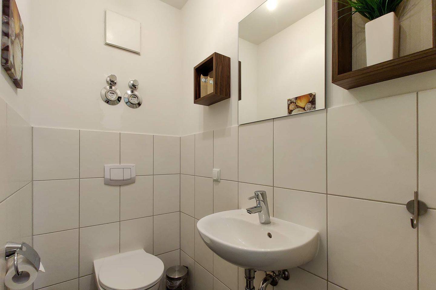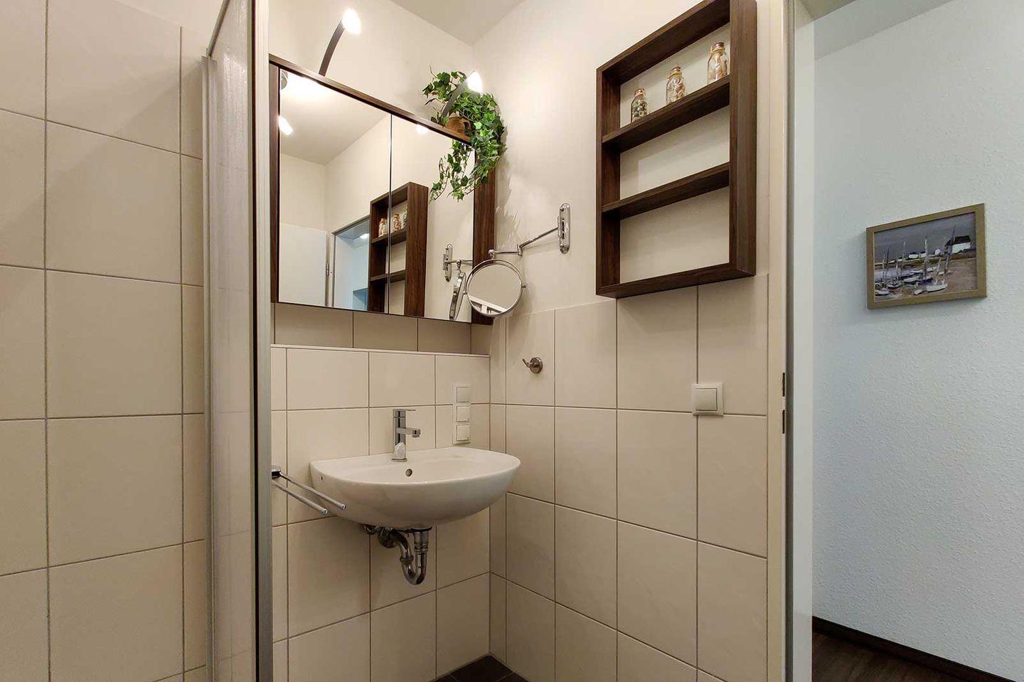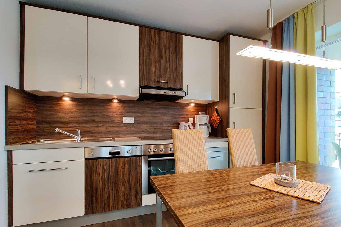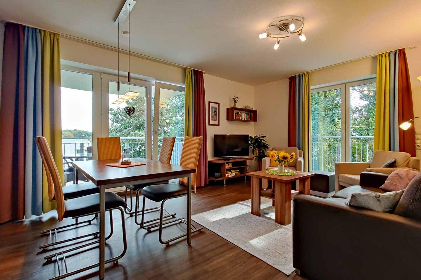 Eines der zwei Schlafzimmer ist ausgestattet mit einem Doppelbett und LCD-TV, das andere Schlafzimmer verfügt über zwei getrennte Betten. Vom Wohnraum mit offener Küche, Essplatz und Schlafsofa haben Sie Zugang zu einem großen und einem kleinen Balkon. Besonders wertvoll beim Urlaub mit mehreren Mitreisenden: Zur Wohnung gehört nicht nur ein Badezimmer mit Dusche, sondern auch ein separates Gäste-WC. In der Tiefgarage ist ein Parkplatz für Sie reserviert. Fahrräder können im abschließbaren Fahrradraum untergebracht werden.