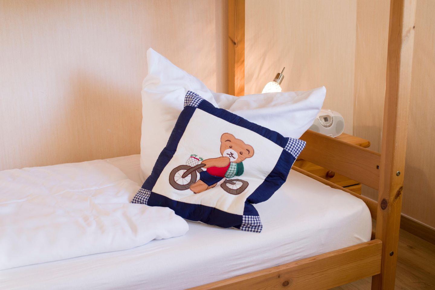 Die Wohnung verfügt über ein Doppelbett im Wohnbereich, sowie einem Schlafzimmer mit Hochbett. Das Badezimmer ist komfortabel gestaltet und bietet eine Badewanne sowie ein WC – ideal für entspannende Stunden nach einem aktiven Tag. Die gut ausgestattete Küche ist offen zum Wohnzimmer gestaltet und lädt dazu ein, selbst köstliche Gerichte zuzubereiten. Sie finden alles, was Sie dafür benötigen, einschließlich eines 4-Platten-Herdes, eines Backofens, einer Mikrowelle, einer Spülmaschine, eines Kühlschranks und einer Kaffeemaschine. Auch Geschirr, Besteck und Küchenutensilien sind ausreichend vorhanden.