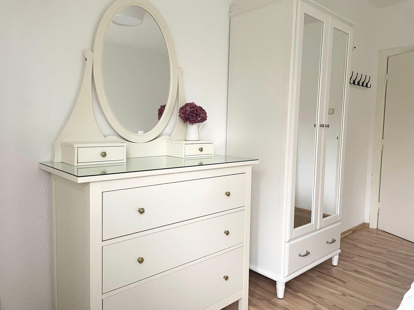 Großzügige Ferienwohnung mit Balkon direkt am Deich, wenige Schritte zum Strand, 2 Schlafzimmer mit Doppelbetten (180 x 200cm), separate Küche mit Spülmaschine, modernes Duschbad mit Duschkabine.