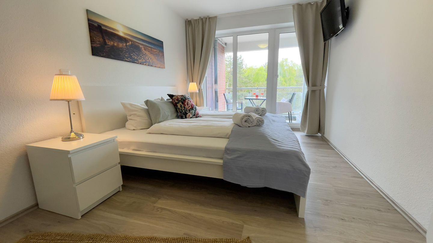 In der 1. Etage liegt diese wunderschöne 2-Raum Ferienwohnung mit einem großen Rundbalkon.