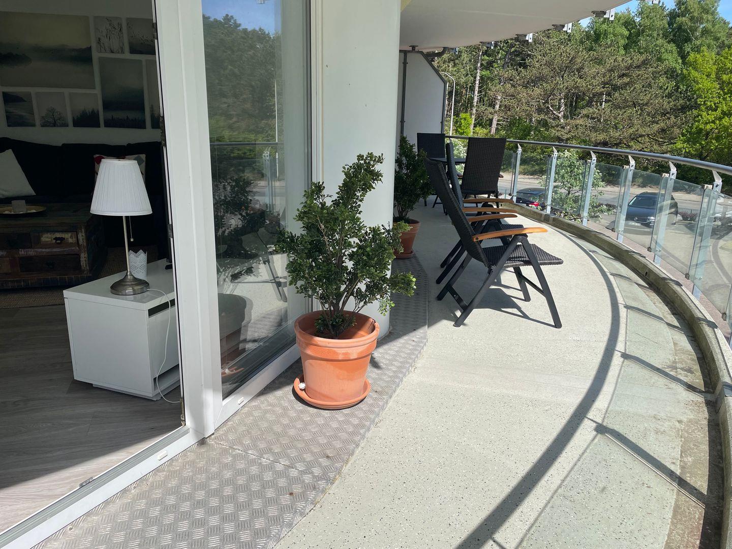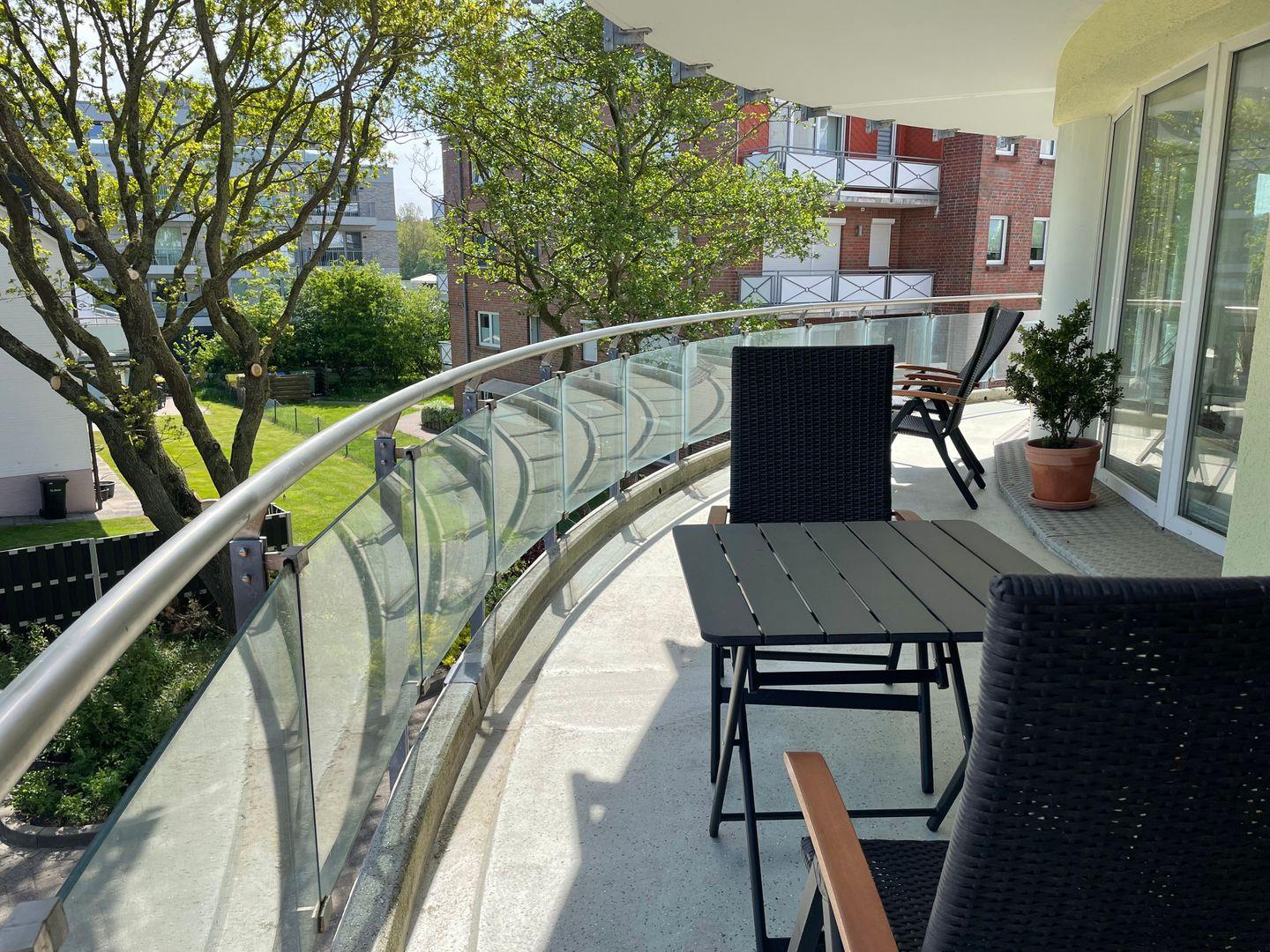 Ein Highlight der Unterkunft ist der große Balkon, auf dem Sie bei einer Tasse Kaffee oder einem Glas Wein die frische Seeluft und die Ruhe genießen können.