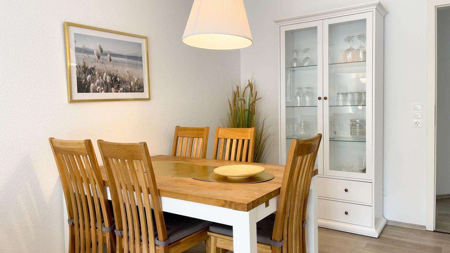 Die Promenade mit Restaurants, Cafés und Shops sowie den Sandstrand erreichen Sie in ca. 200 Metern. Auch der Hundestrand ist nur wenige Gehminuten entfernt.