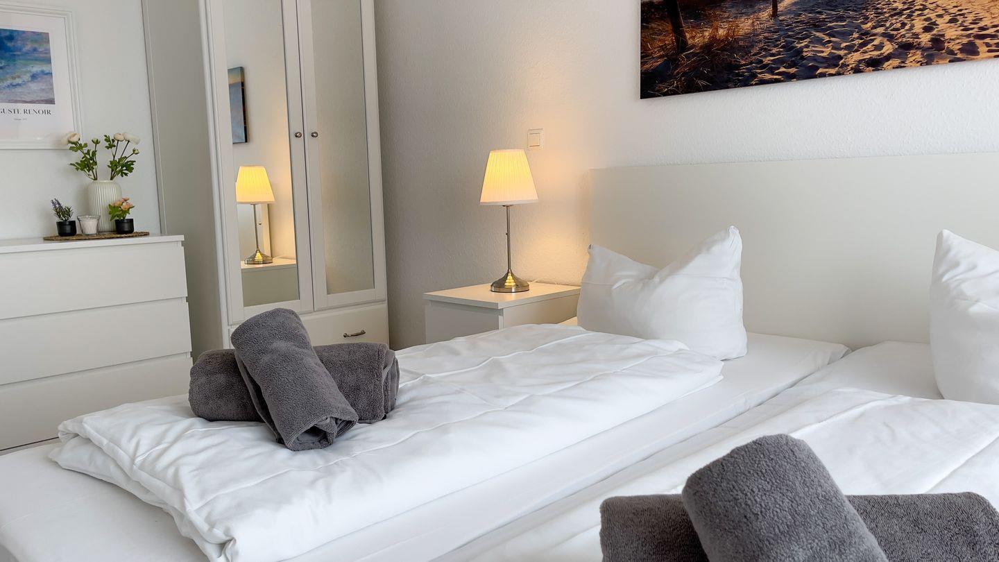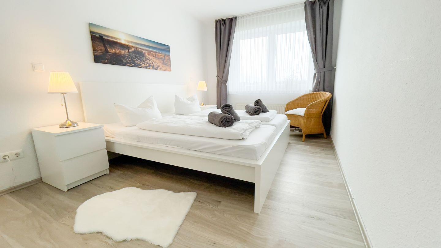 Zwei einladende Schlafzimmer mit einem gemütlichen Ambiente sorgen für ungestörten Schlaf und erholsame Nächte. Das Badezimmer verfügt über eine Badewanne mit Duschmöglichkeit.