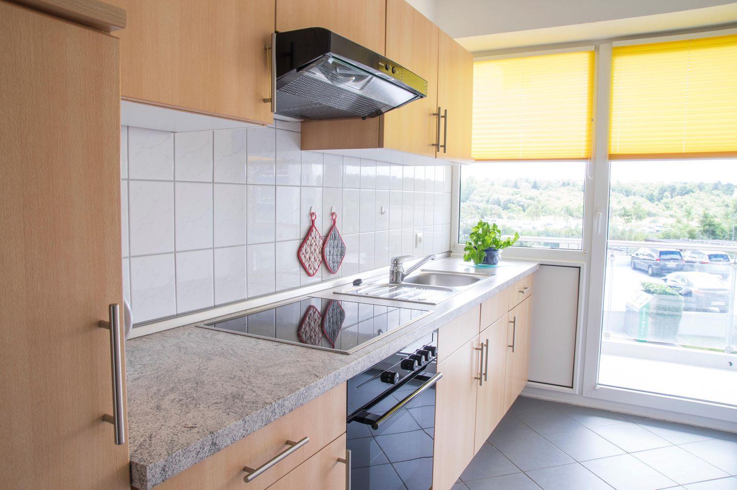 Die geschlossene Küche mit Balkon ist voll ausgestattet. Von einem Cerankochfeld über Backofen und Spülmaschine bis hin zu Mikrowelle und Kühlschrank mit Gefrierfach – hier bleiben keine Wünsche offen. Auch sämtliche Küchenutensilien sind vorhanden, so dass Sie sich ganz wie zu Hause fühlen können. Genießen Sie Ihre Mahlzeiten am Esstisch oder auf einem der beiden Balkone, von denen aus Sie den Blick auf Meer und Wald genießen.