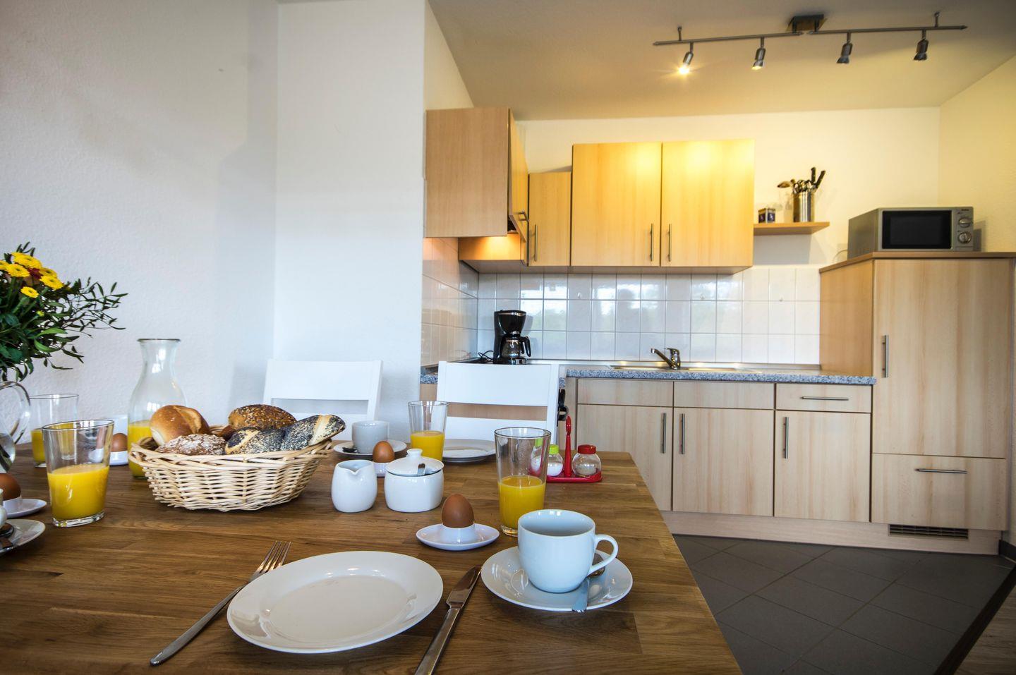 Diese charmante Ferienwohnung in der 1. Etage (mit Aufzug) bietet auf ca. 63?m² genügend Platz für 1 bis 4 Personen. Auf dem möblierten Balkon genießen Sie einen schönen Seeblick und entspannte Stunden. Die voll ausgestattete Küchenzeile lädt zum gemeinsamen Kochen ein.