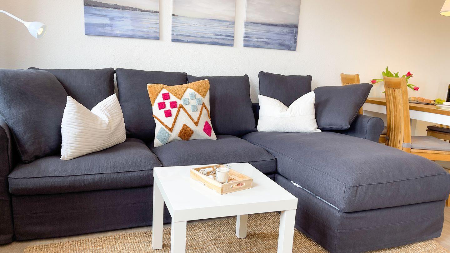 Im separaten Schlafzimmer verspricht das Doppelbett eine erholsame Nacht. Zwei weitere Person findet bei Bedarf auf der gemütlichen Schlafcouch im Wohnzimmer Platz. Die moderne, vollausgestattete Küchenzeile mit Geschirrspüler, lässt keine Wünsche für Ihre Mahlzeiten offen.