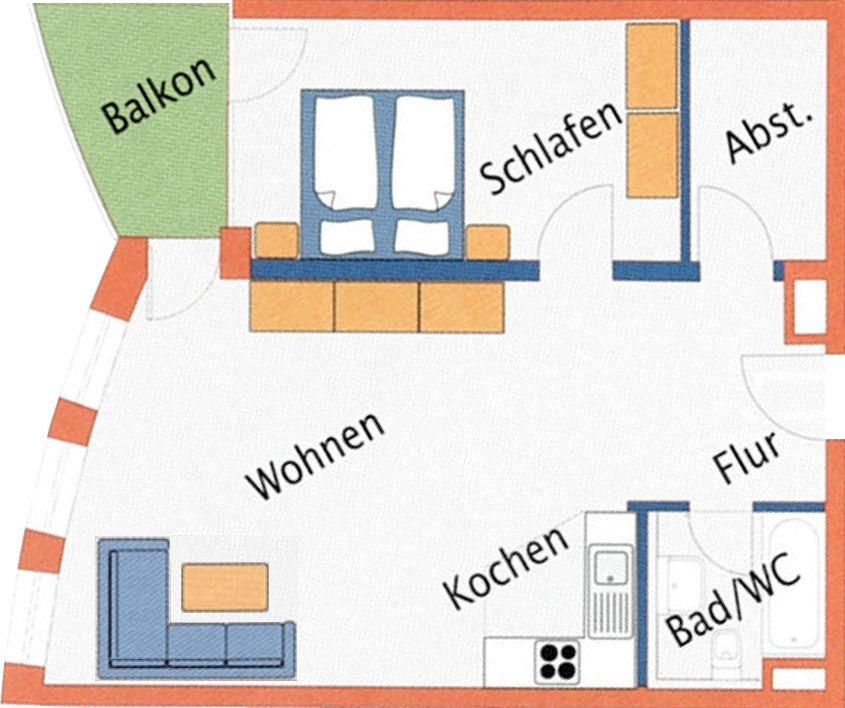 Diese gemütliche, strandnahe Ferienwohnung mit ihren 63qm ist für 1 bis 4 Personen geeignet. Sie liegt in der 1. Etage, ein Fahrstuhl ist vorhanden.