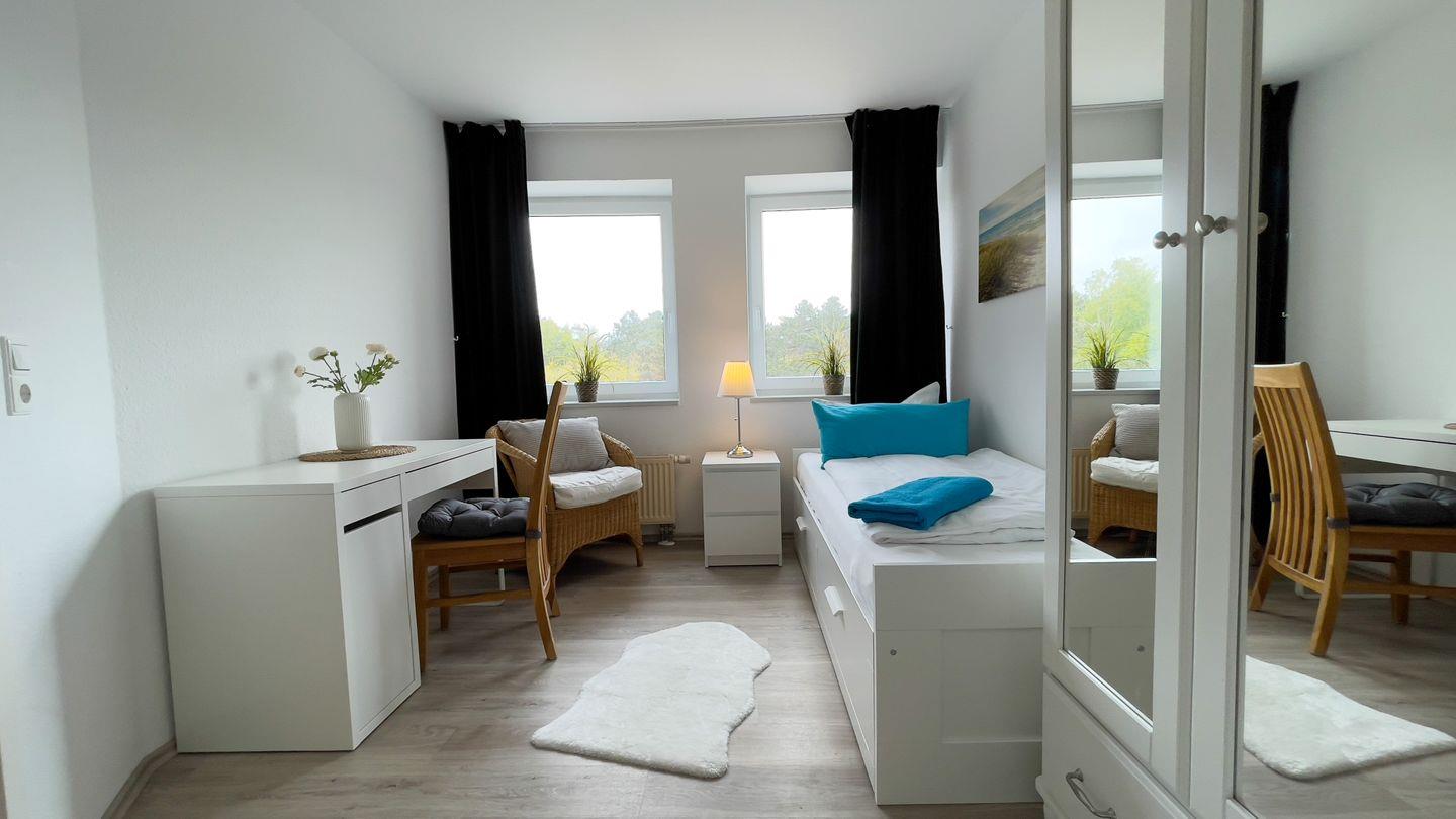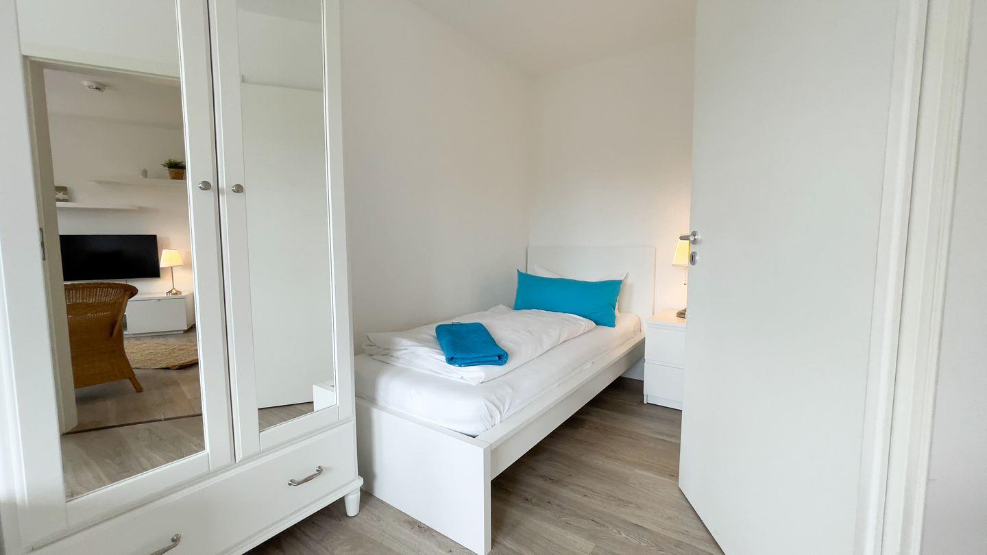 Das zweite Schlafzimmer verfügt über ein Einzelbett und ein ausziehbares Tagesbett (160cm) und verspricht ebenfalls erholsame Nächte.