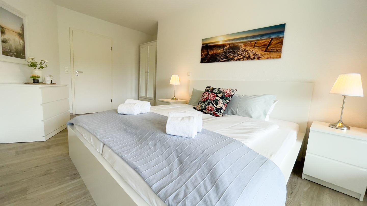 Das erste Schlafzimmer verfügt über ein 180 x 200 cm großes Doppelbett, das zweite Schlafzimmer ist mit einem Einzelbett, sowie einem ausziehbaren Tagesbett (Doppelbett 160 x 200 cm) ausgestattet.