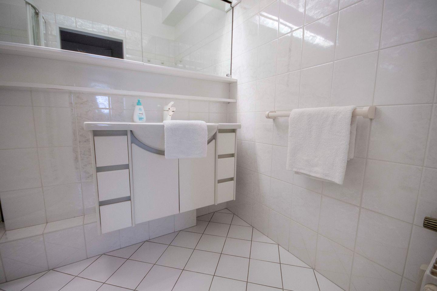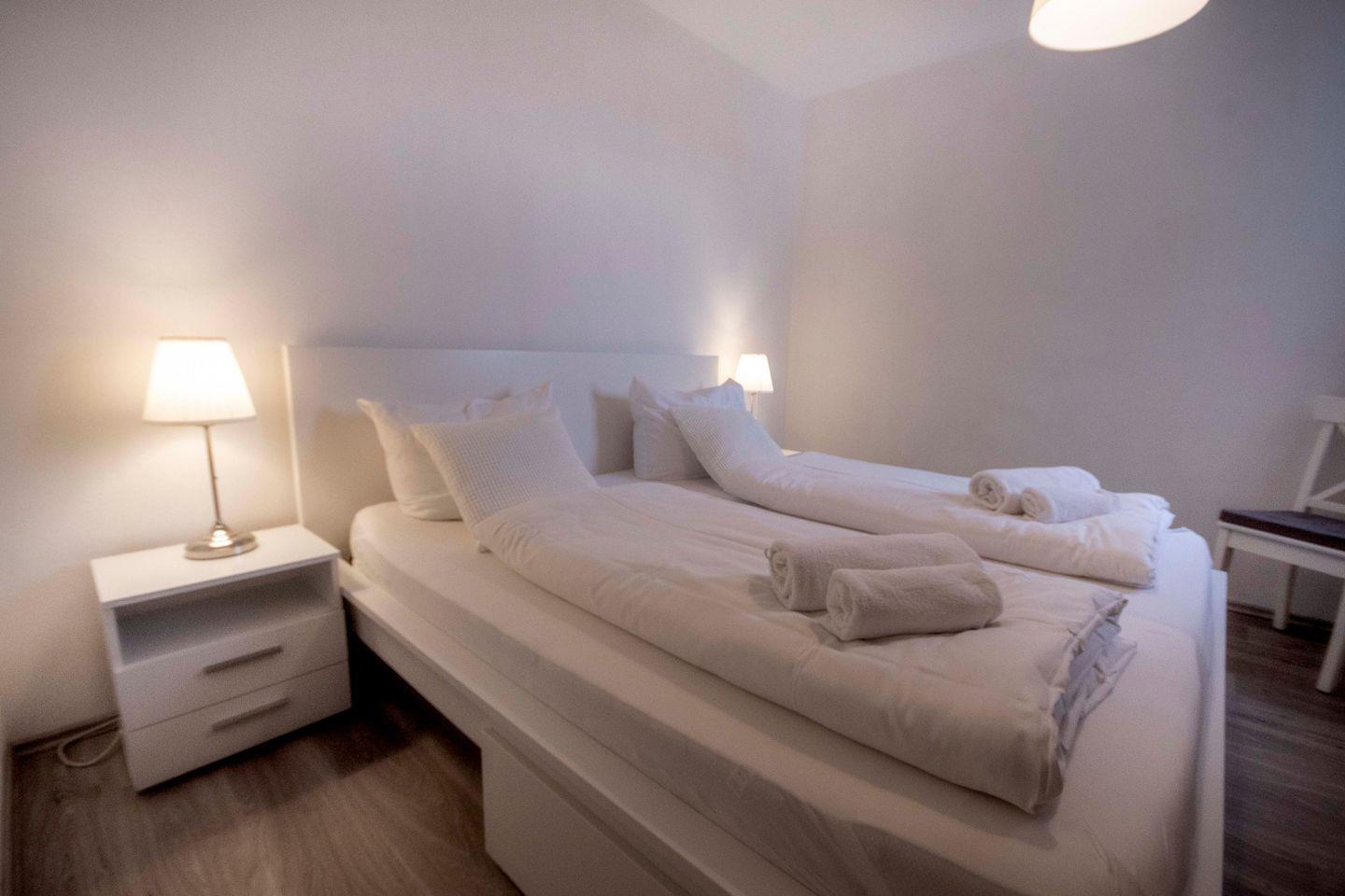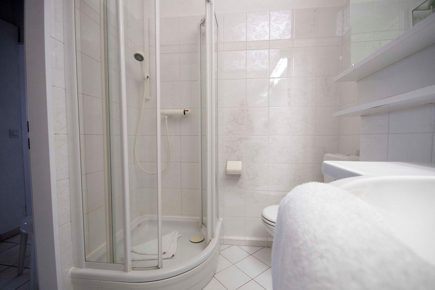 Die Unterkunft verfügt über zwei Schlafzimmer, die zum Entspannen und Erholen einladen. Zusätzlich befindet sich im Wohnzimmer ein Schlafsofa. Das Badezimmer ist mit einer Dusche ausgestattet. Zudem finden Sie praktische Annehmlichkeiten im Haus, wie gemeinschaftlich genutzte Waschmaschinen und Trockner, vor, um Ihre Reise so angenehm wie möglich zu gestalten.