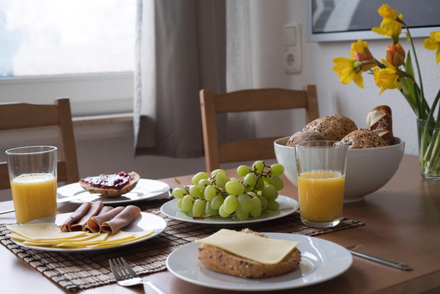 Die Küche unserer Ferienwohnung ist vollständig ausgestattet und lässt keine Wünsche offen. Sie finden alles, was Sie benötigen, um sich selbst zu verpflegen – inklusive einem 2-Platten-Herd, Kühlschrank, Kaffeemaschine, Toaster und Wasserkocher. Der Esstisch im Apartment lädt zum gemeinsamen Speisen ein und sorgt für Geselligkeit. Alternativ können Sie auch die zahlreichen Restaurants in der Nähe ausprobieren, die lokale und internationale Küche anbieten.