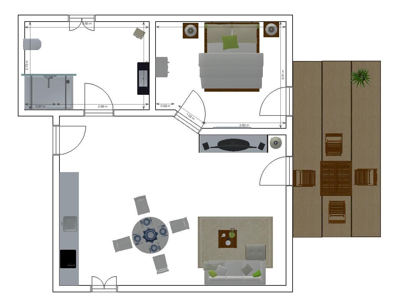 Zur Wohnung gehört ein möblierter Balkon.