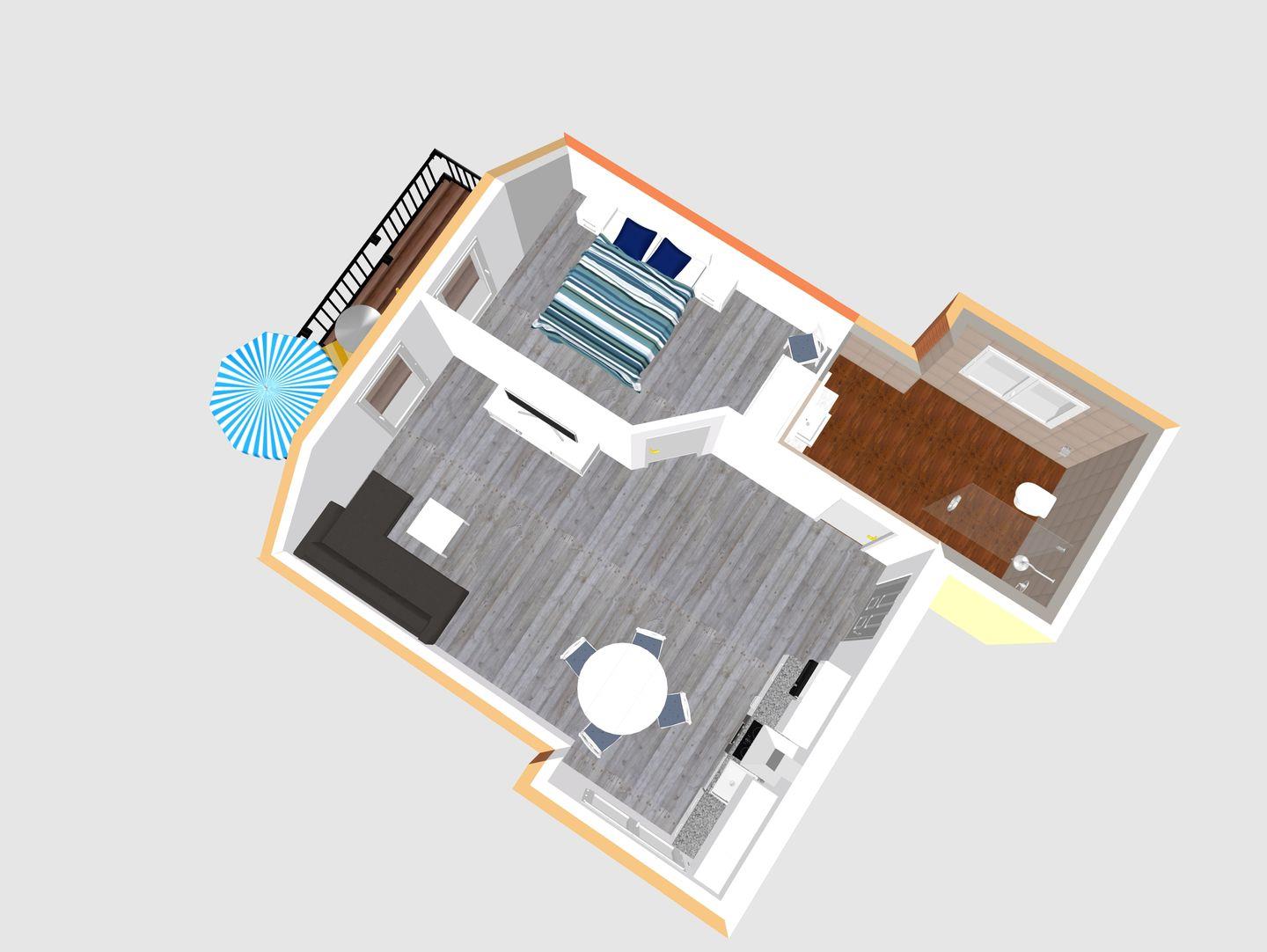 Das strandnahe Ferienappartement im 1. Stock bietet auf 56qm Platz für bis zu 4 Personen.