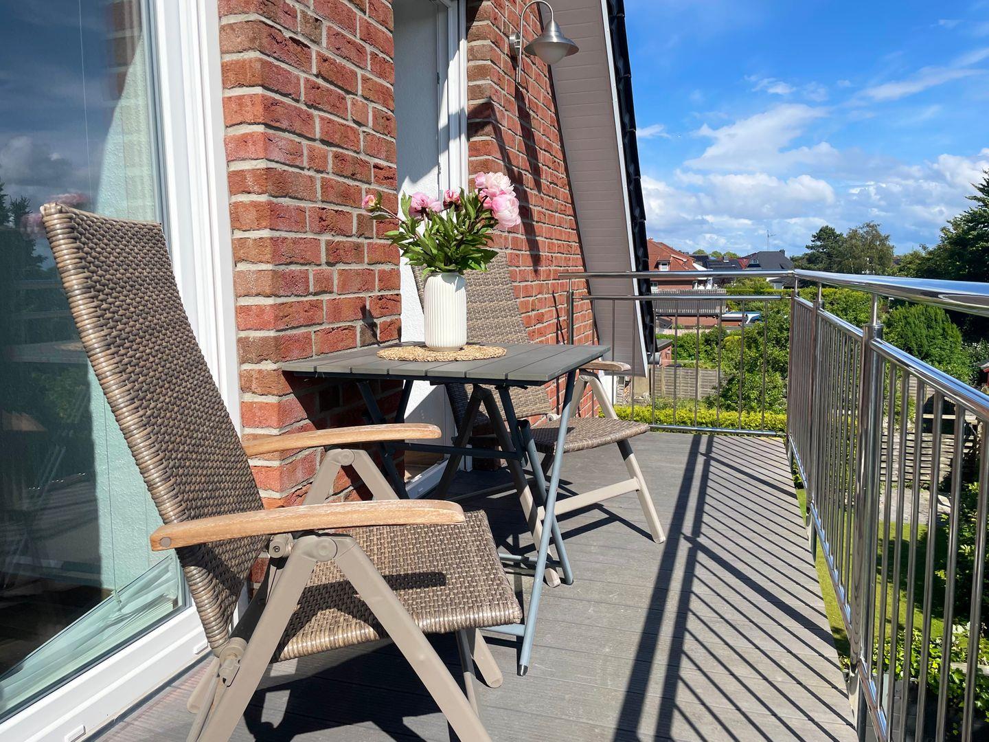 Zur Wohnung gehört ein möblierter Balkon.