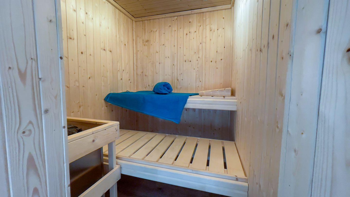 Das Highlight der Wohnung ist die private Sauna und der Whirlpool, die dazu einladen, nach einem aktiven Tag am Strand zu relaxen. Die bodengleichen Duschen in beiden Badezimmern sorgen für zusätzlichen Komfort, während die Badewanne mit Whirlpool-Funktion in einem der Bäder der perfekte Ort ist, um sich nach einem Tag an der frischen Luft zu entspannen.