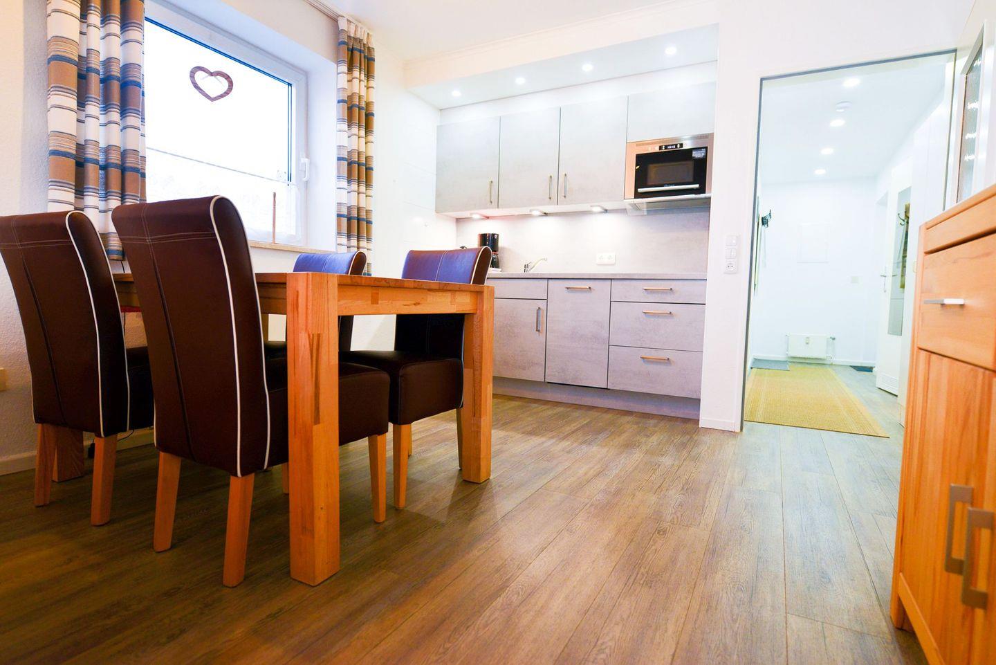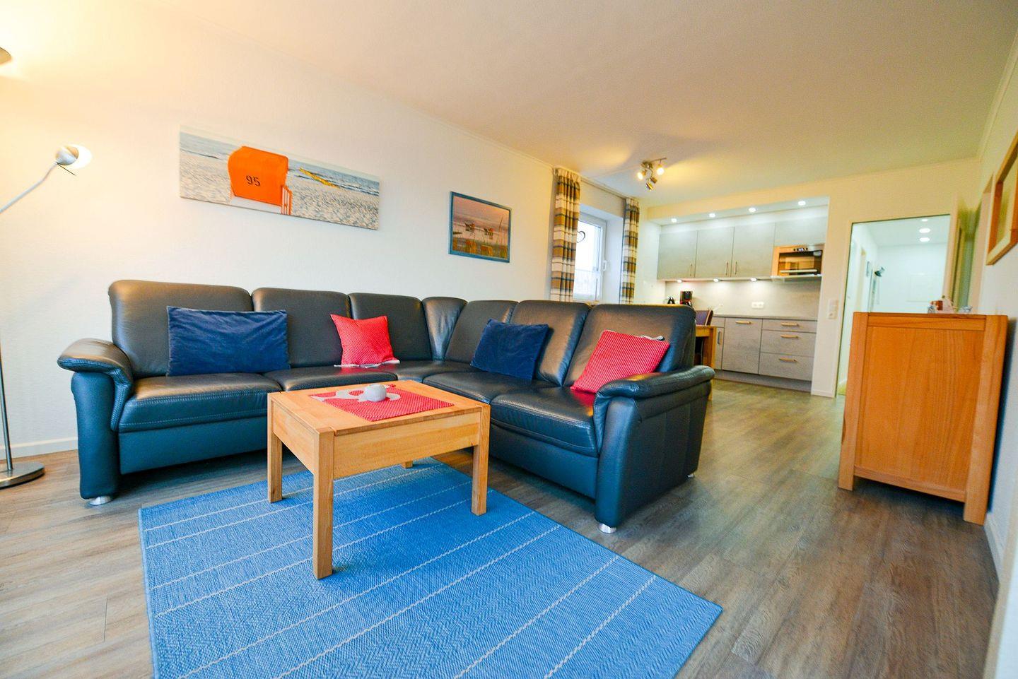 Die 50m² große Ferienwohnung überzeugt Nordseeurlauber mit modernem Nordsee-Flair und schöner, vollwertiger Ausstattung. Von der vollausgestatteten Küche, über den hellen Wohnraum mit Flatscreen TV bis hin zum modernen Bad ist diese Ferienwohnung auf Wohlfühlen an der Nordsee zugeschnitten. Nur 150 Meter liegen zwischen Ihnen und langen Strandspaziergängen und für die Zeit nach langen Strandtagen bietet sich der Balkon dazu an, den Abend an der Meeresluft ausklingen zu lassen. Urlaubern, die Wert auf Entspannung und Wellness legen, können wir das hauseigene Schwimmbad und die Sauna nur wärmstens empfehlen.
