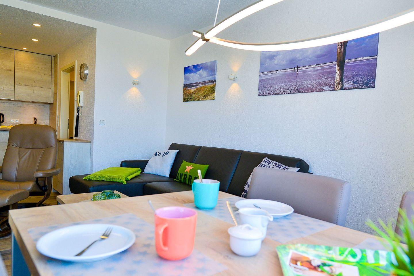 Die modern und hochwertig ausgestattete im Haus Frische Brise bietet auf ca. 42 m² alles, was Sie für einen komfortablen Urlaub an der Nordsee brauchen – inklusive Meerblick aus dem Wohnbereich und dem Schlafzimmer. Genießen Sie vom ersten Moment an klare Seeluft, Sonnenuntergänge und das Panorama des UNESCO-Weltnaturerbes Wattenmeer.
