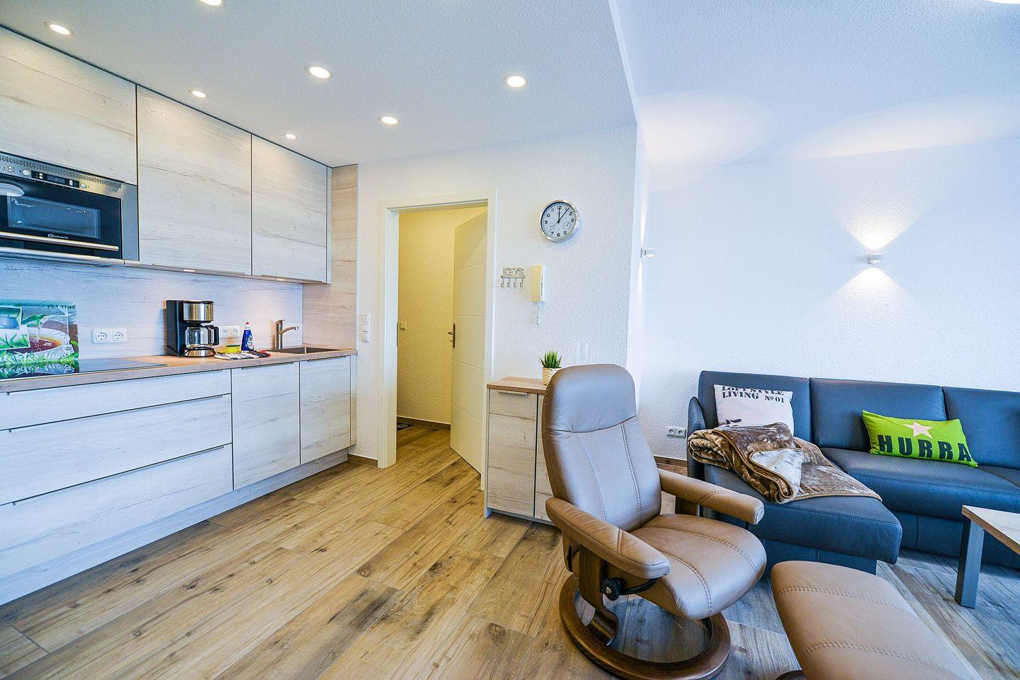 Hochwertige 2-Zimmer-Ferienwohnung in Cuxhaven-Sahlenburg mit Meerblick aus Wohn- und Schlafzimmer. Nur 150?m zum Strand, mit Balkon, moderner Küche, Bad mit Dusche, WLAN, TV im Wohn- und Schlafzimmer. Hund erlaubt, Schwimmbad im Haus, Sauna gegen Gebühr, kostenloser Parkplatz. Ideal für Paare, die Ruhe, Komfort und die Nähe zur Nordsee suchen.
