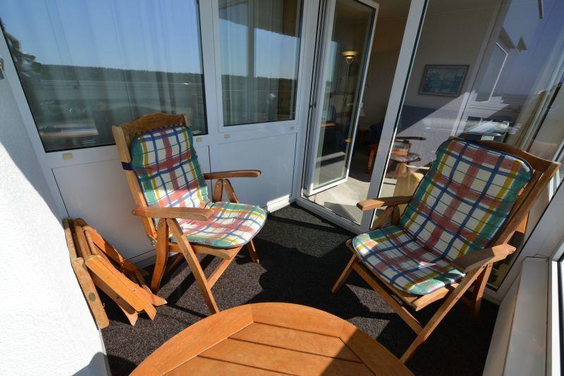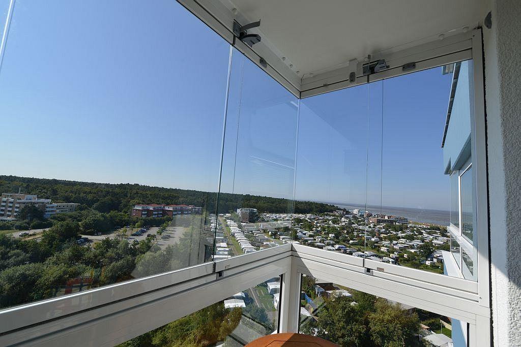Nach dem Strandbesuch lassen sich schöne Stunden auf dem verglasen Südbalkon mit seitlicher Seesicht verbringen, der sich komplett öffnen lässt.