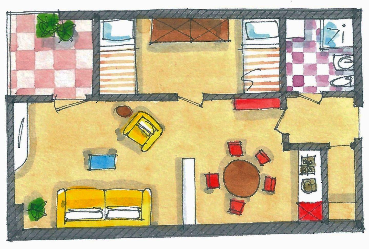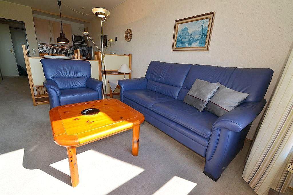 Die vollwertige Ausstattung der Ferienwohnung ermöglicht ein schönes Urlaubserlebnis, fernab vom Alltag und ohne Abstriche. In der Küchenzeile lassen sich Ihre Lieblingsgerichte zubereiten und das Wohnzimmer lädt zu gemütlichen TV Abenden ein.