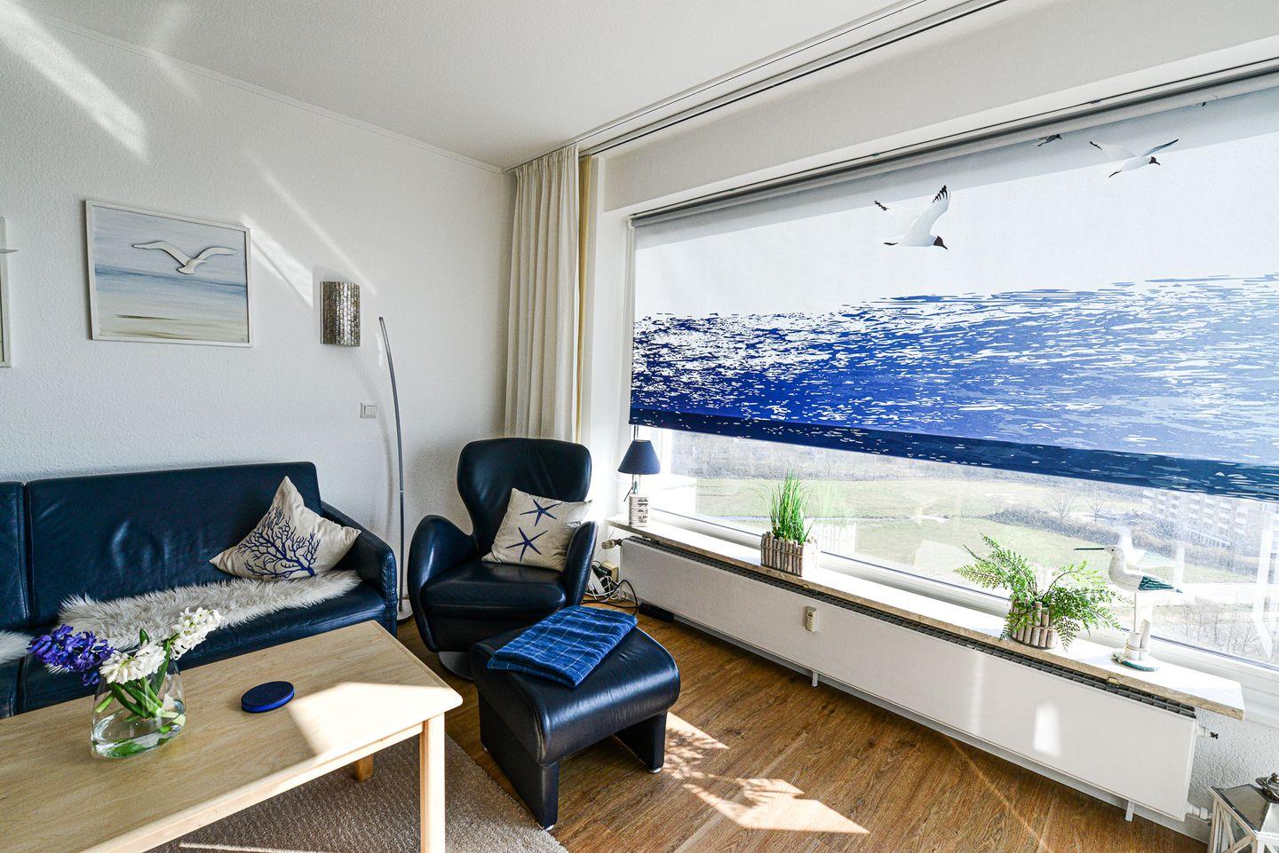 Diese stilvolle Ferienwohnung in der 14. Etage, nur 150 Meter vom Strand entfernt, bietet auf ca. 42m² Platz für bis zu drei Personen und ist die ideale Unterkunft für einen entspannten Nordseeurlaub. Mit modernem nordischem Flair und gemütlicher Atmosphäre ausgestattet, erfüllt sie höchste Ansprüche an Komfort und Lage