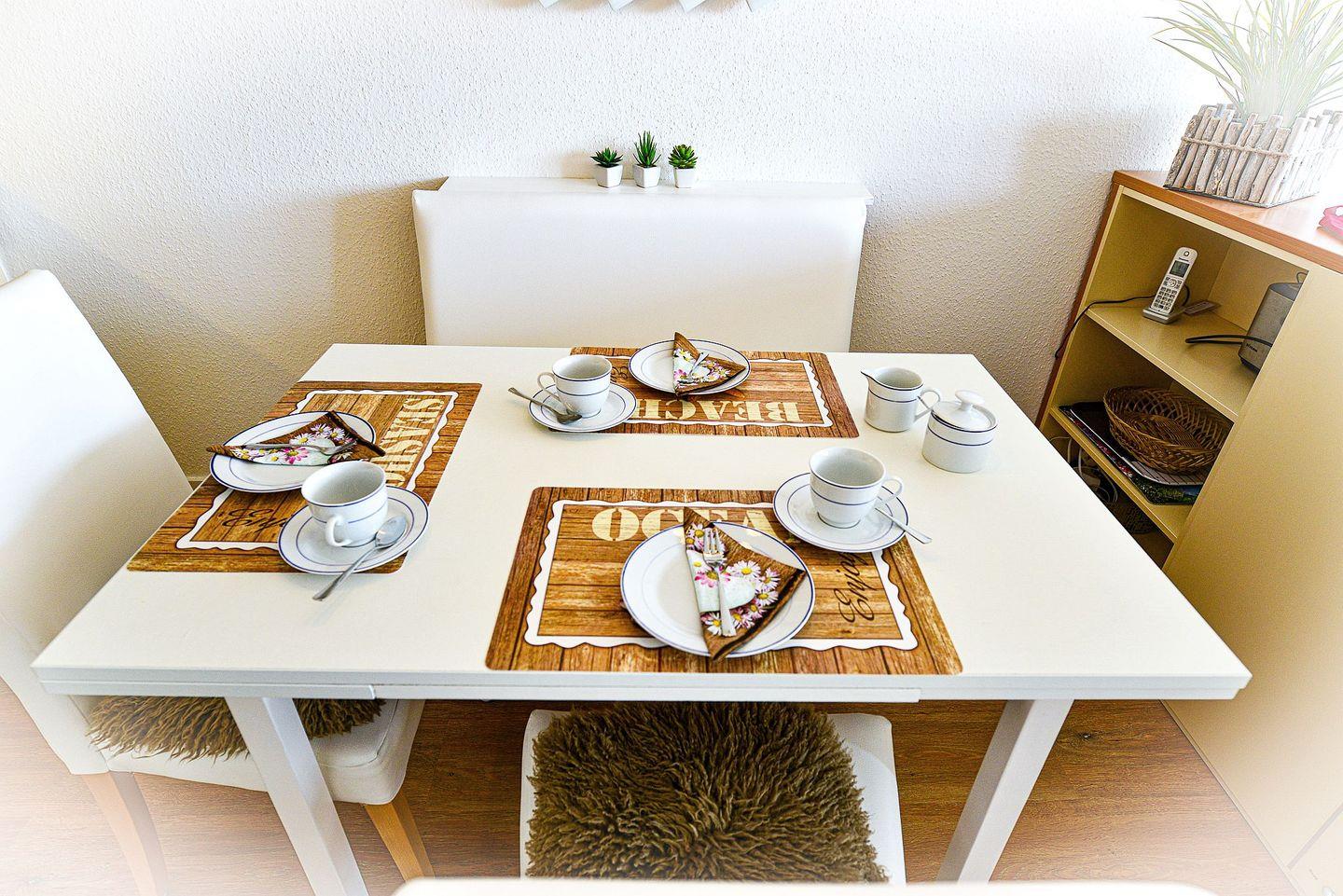 Die Ferienwohnung eignet sich für einen Urlaub mit Hund und verfügt über einen kostenlosen Parkplatz am Haus für eine komfortable An- und Abreise. Das kostenlose WLAN und der inkludierte Strandkorb runden einen Urlaub, der nichts zu wünschen übriglässt, ideal ab. Alle Urlauber, die den Urlaub gerne aktiv und sportlich betreiben, freuen sich über den Tischtennisraum im Haus.