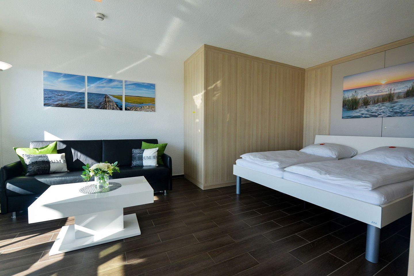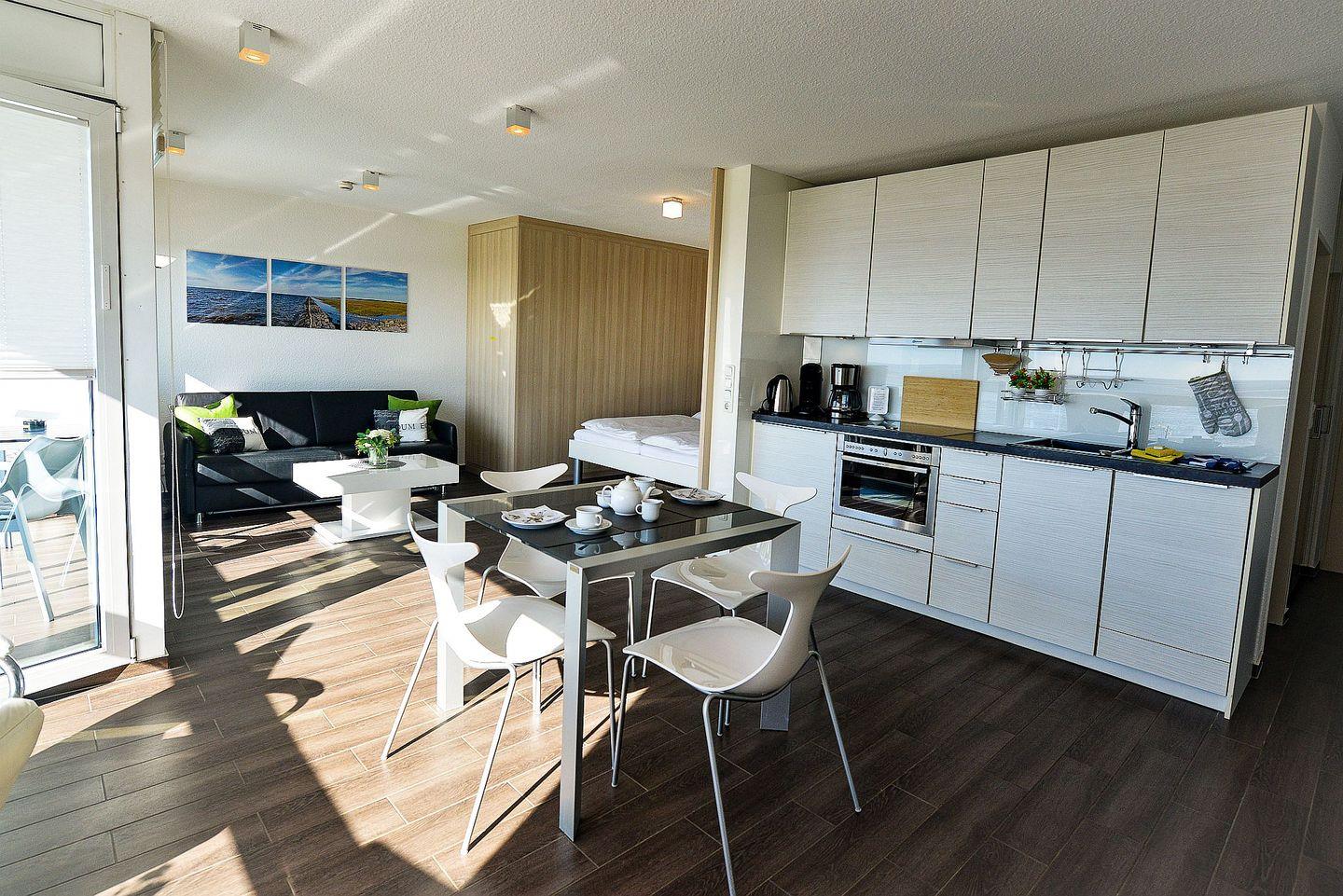 Dieses stilvoll eingerichtete Einraumapartment bietet Ihnen alles, was Sie für einen erholsamen Aufenthalt brauchen. Der komplett verglaste Westbalkon lässt sich vollständig öffnen und eröffnet Ihnen einen unvergleichlichen Blick auf den Weltschifffahrtsweg sowie die Insel Neuwerk – ein echtes Highlight, das jeden Tag mit einem besonderen Panorama beginnt und endet.