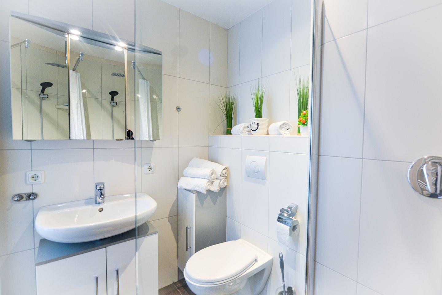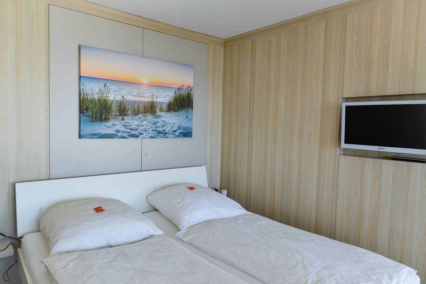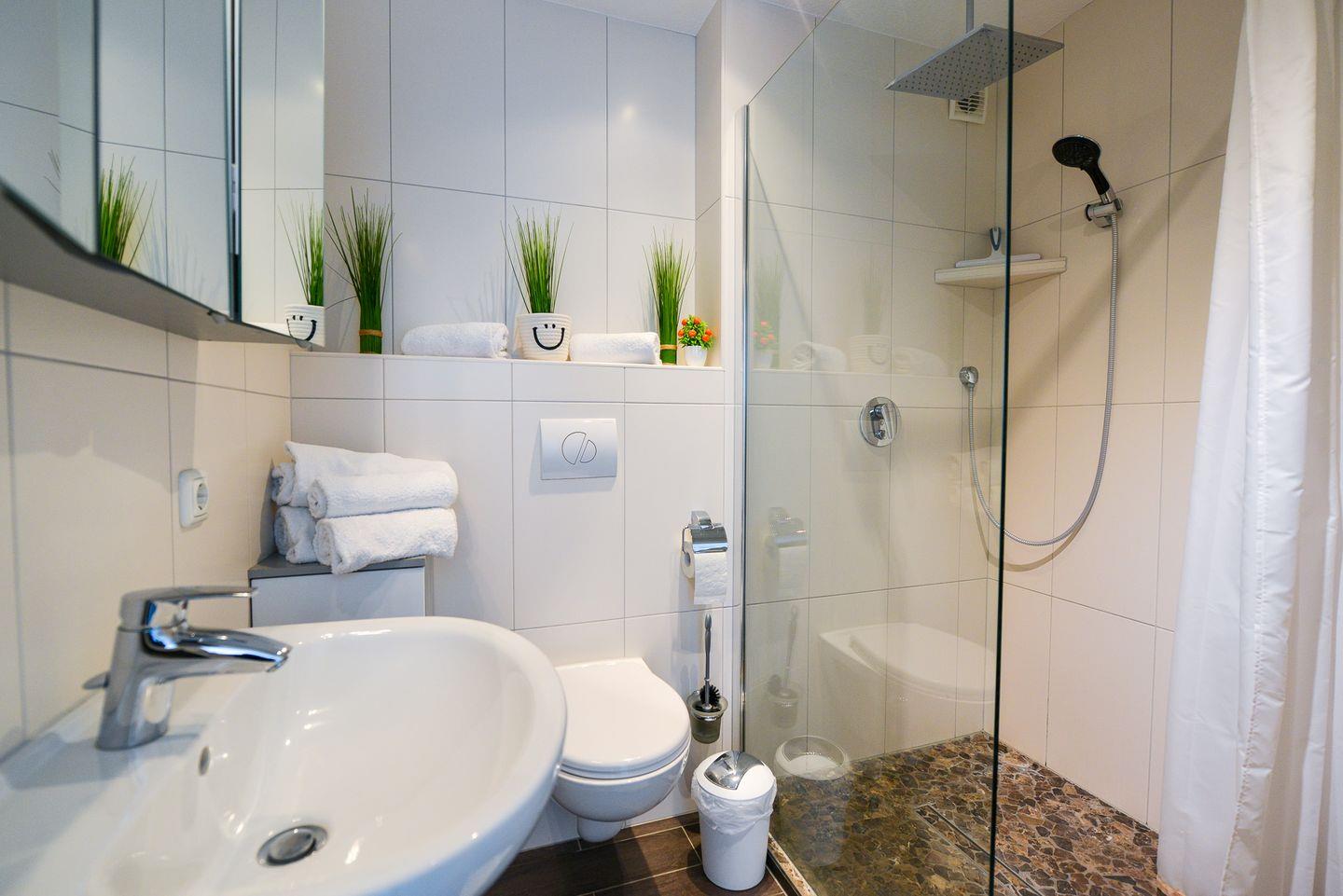 Die Ferienwohnung ist mit einem hochwertigen Doppelbett aus dem Bettenhaus und einem zusätzlichen Schlafsofa ausgestattet, sodass Sie hier bequem zu zweit oder auch mit einem weiteren Gast entspannen können. Für Unterhaltung sorgen zwei moderne Fernseher und kostenfreies WLAN. Die offene Küche ist voll ausgestattet und bietet Ihnen die Möglichkeit, sich auch im Urlaub selbst zu versorgen. Das frisch renovierte Badezimmer überzeugt mit einer ebenerdigen Dusche, WC und einer Regendusche für den besonderen Komfort. Ein eigener Parkplatz steht Ihnen kostenlos zur Verfügung – bequem direkt am Haus.