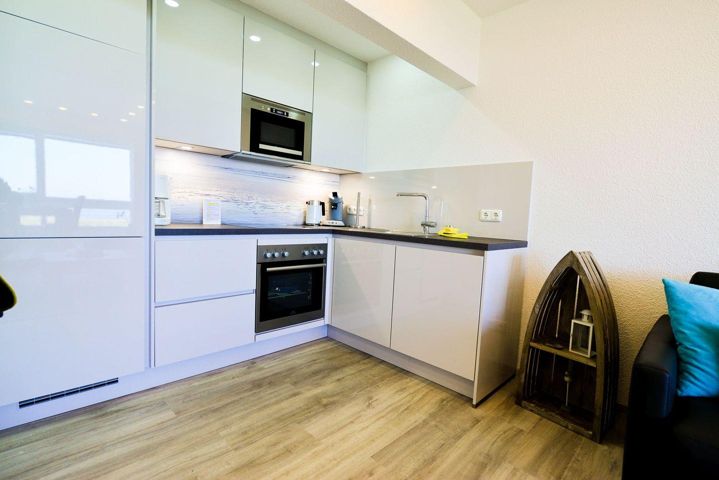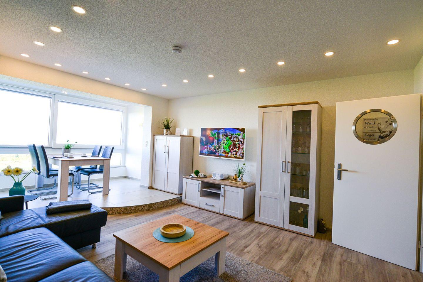 Auf ca. 50 m² erwartet Sie ein helles und modernes Ambiente, das ideal für eine entspannte Auszeit ist. Der offene Wohnbereich mit einer großen verglasten Fensterfront, die sich öffnen lässt, schafft eine angenehme Atmosphäre und ermöglicht Ihnen stets eine fantastische Aussicht. Die vollausgestattete Küchenzeile lässt keine Wünsche offen, und mit zwei Fernsehern sowie kostenlosem WLAN sind auch Unterhaltung und Komfort garantiert.